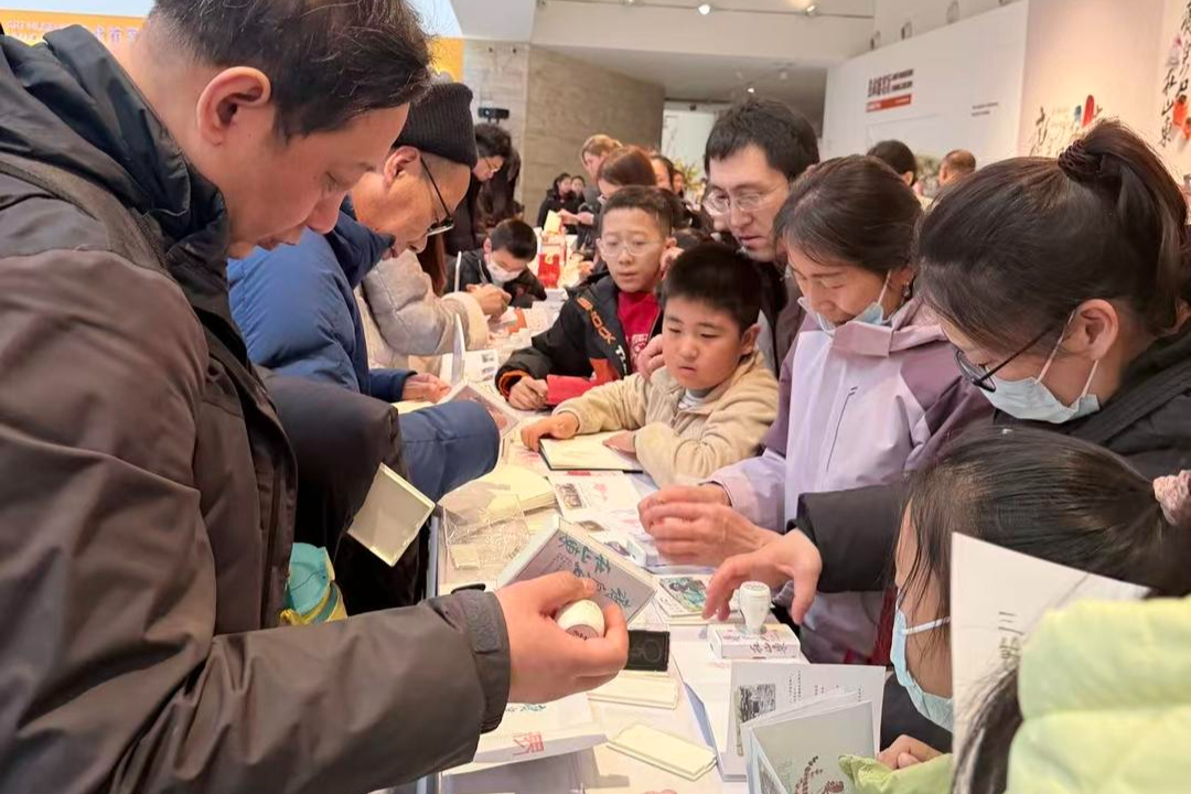 走出展厅,文创消费也越来越热。在山东美术馆,人们挤在文创区盖章、购物。可以“动”的小扇子动画明信片,印有齐白石所画呆萌小鸟的帆布包、形状别致的鎏金葫芦冰箱贴……丰富多样的文创令人眼前一亮。工作人员丛君介绍,假期前文创区日均客流量约有7000人次,购买者大多为年轻人。