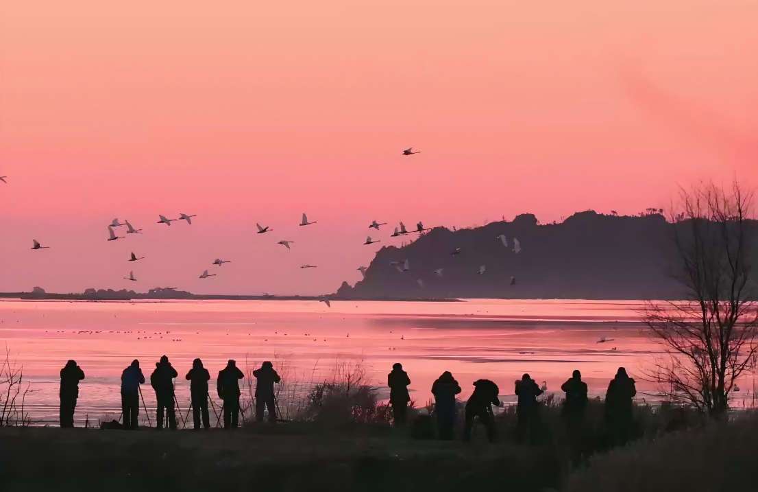 元旦假期,来自全国各地的摄影爱好者们纷纷来到荣成好运角旅游度假区的天鹅湖,赏天鹅观日出。(来源:闪电新闻 记者 姜钰行 单大伟 荣成台 滕彬 秦先达 报道)