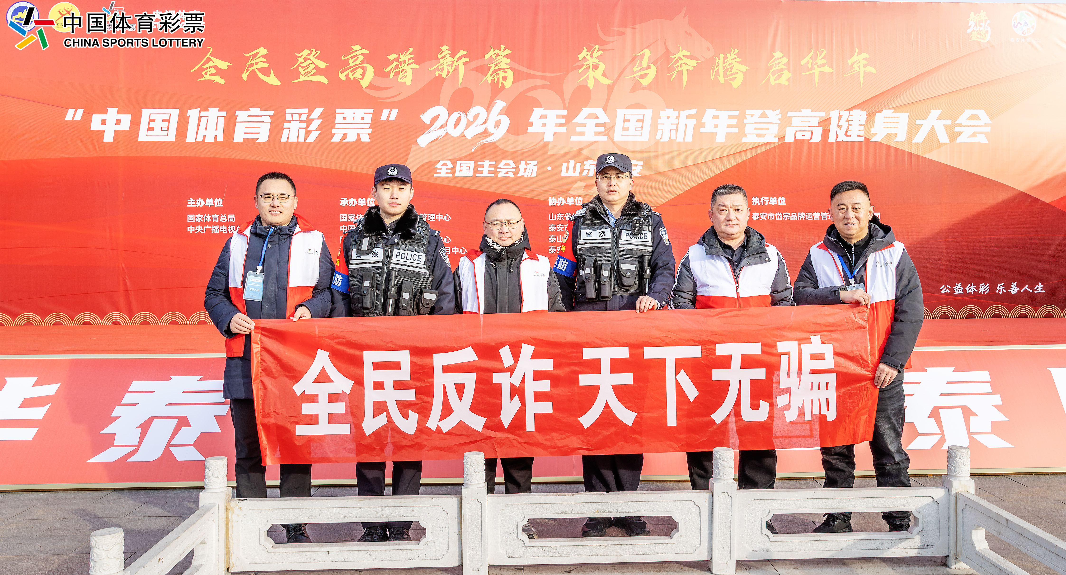 2026年1月1日,“中国体育彩票”全国新年登高健身大会在山东泰安主会场盛大启幕。作为一项承载“新年步步高,节节向上攀”美好寓意的全国性全民健身盛事,本次大会不仅吸引了众多登山爱好者共同迎接新年曙光,还融入了中国体育彩票“安心购彩守护行动”主题互动宣传,在倡导全民健身的同时,引导公众正确认识彩票的公益属性,提升对非法彩票的辨别与防范能力。