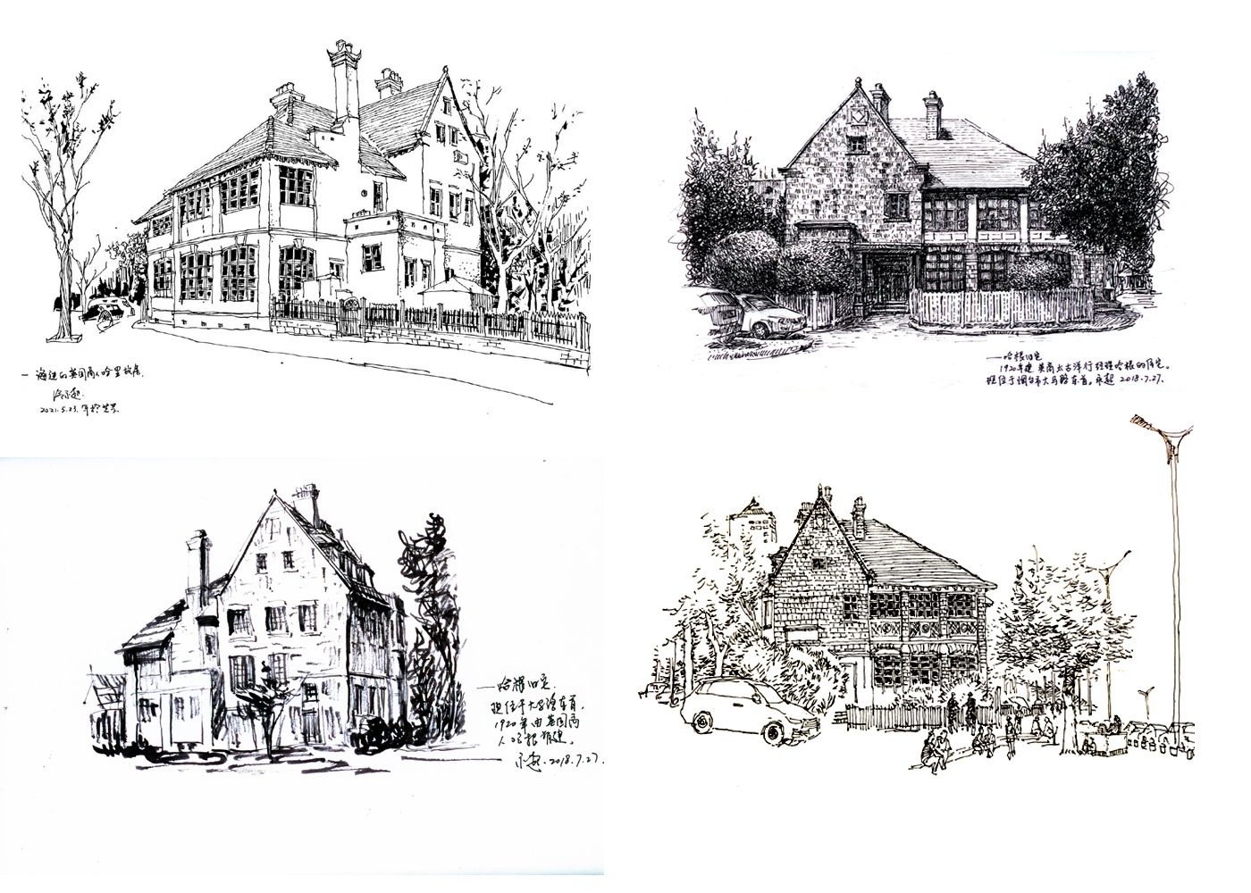七年间,风里来,雨里去,只为一种说不出来的情愫和感怀。这些绘画已经将冷永超和老建筑“绑定”了。为深入了解“哈根故居”这栋建筑的结构特点,他先后画过四幅不同角度、不同风格的作品,他的生命或许已经和这些老建筑“长在了一起”。