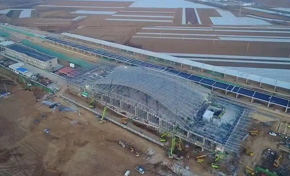 济阳站房、商河站房钢网架整体顶升完成,标志着全线站房钢网架全部顶升完成。