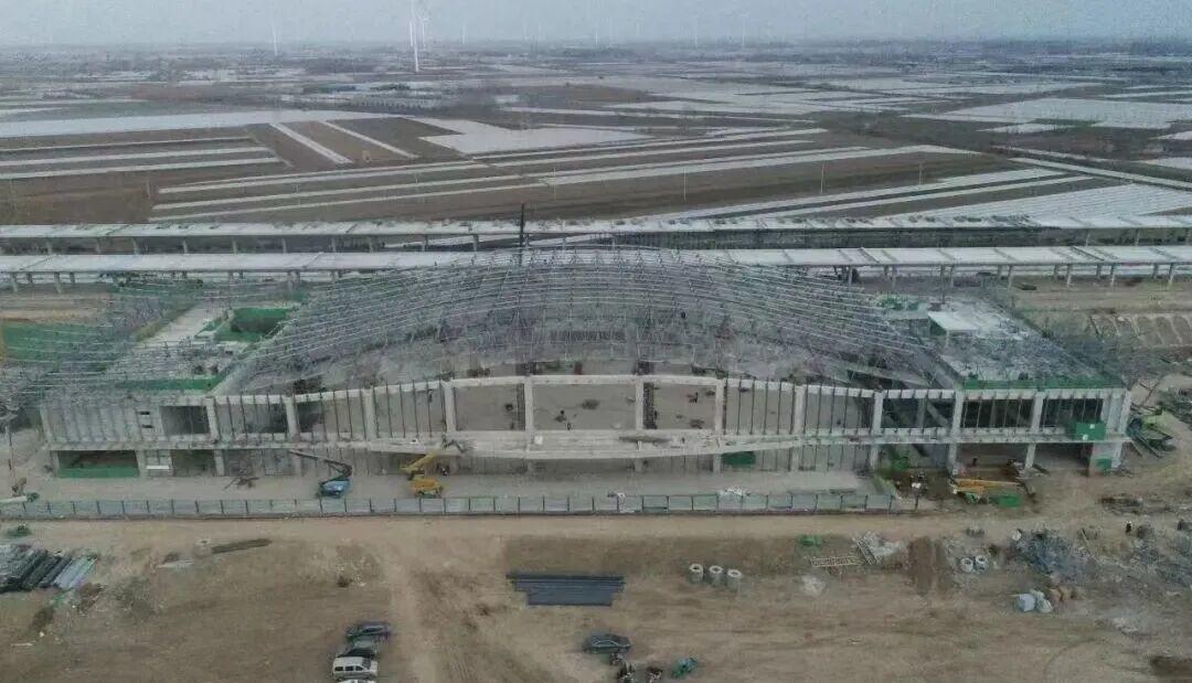济滨高铁济阳站房、商河站房钢网架顶升完成