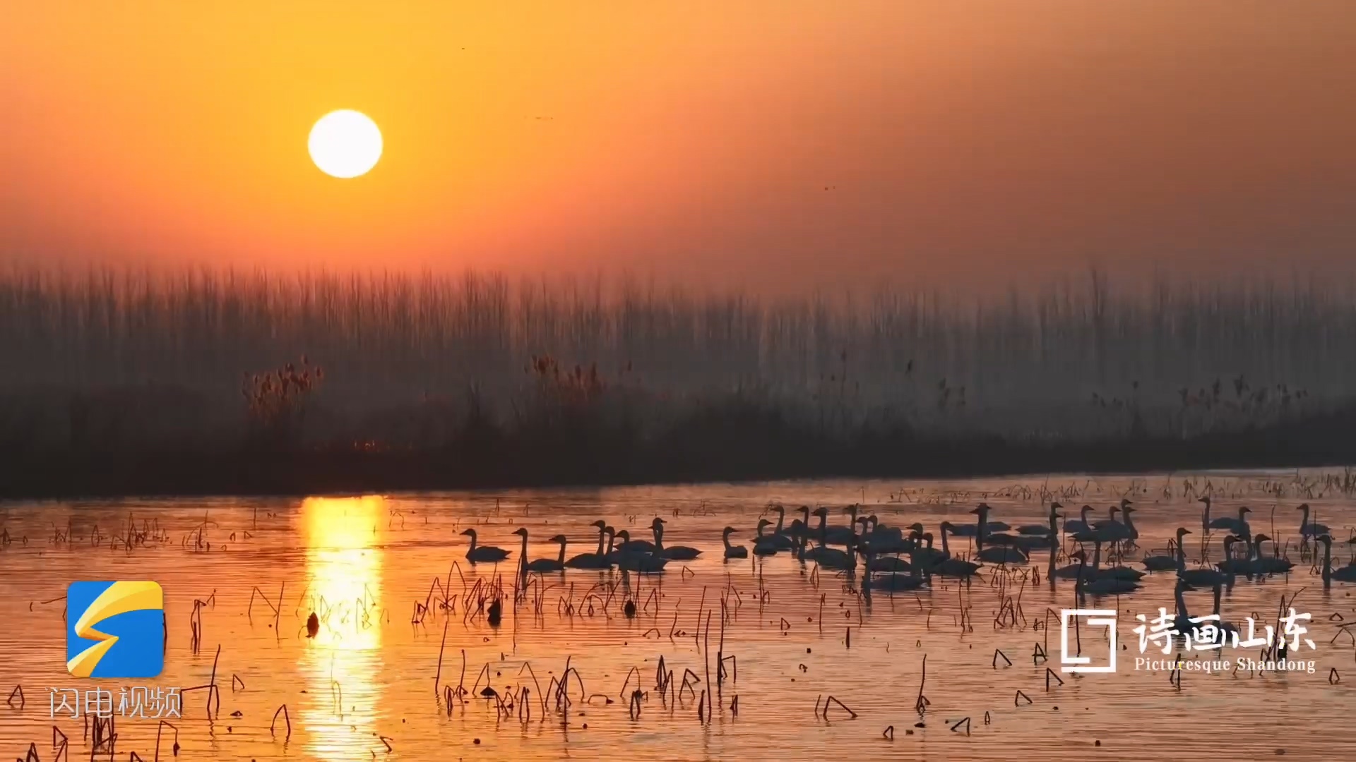 晨雾如纱,轻笼湖面。冬日的微山湖,已成候鸟翩跹的温暖家园。