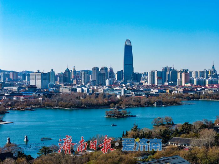 1月12日,济南迎来持续晴冷天气,澄澈如洗的“泉城蓝”铺满天际。