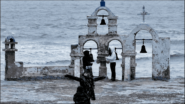 林曲凤说,山东半岛中部横亘着很多小丘陵,北临黄、渤海,有绵长的海岸线。冬季海面相对于陆地暖湿,当强冷空气南下经过暖海面时,被加热加湿,逐渐达到饱和;受丘陵地形阻挡,饱和水汽堆积于山脉以北地区,同时被地形抬升到高空,凝华成雪。海洋提供的充足水汽,让这里的降雪量大幅增大,造就了烟台、威海独有的冷流雪奇观。