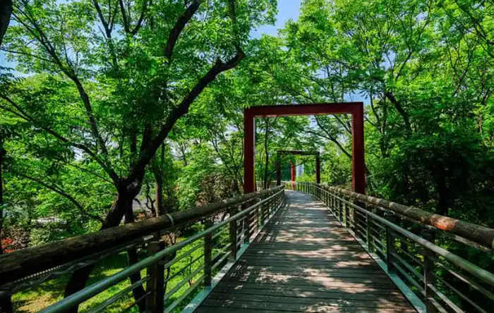 泉城公园内全长820米的生态栈桥,像一条飘逸的丝带,悄悄连接起玉绣河广场与生态广场,不仅留住了满园绿意,更将南区景点、水系和步道轻盈串联。行走其间,仿佛在树梢间漫游,每一步都是风景,每一转身都遇见新惊喜。