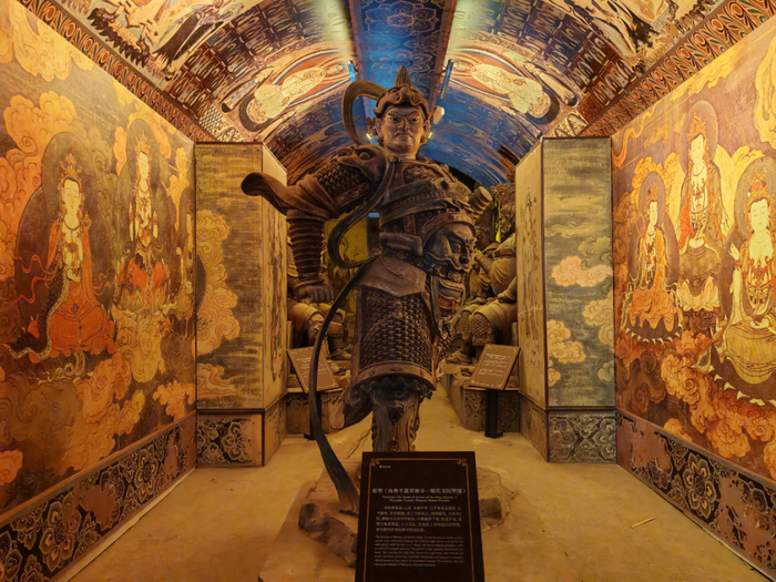 “四窟万像”石窟文化体验中心是千佛山“公园+文化”的标杆项目。项目运用数字投影、全息影像等现代科技,让千年石窟造像“活”起来,为游客提供沉浸式的艺术观赏体验。节假日期间,洞外广场常设有特色市集,是感受丝路文化与石窟艺术魅力的首选打卡地。