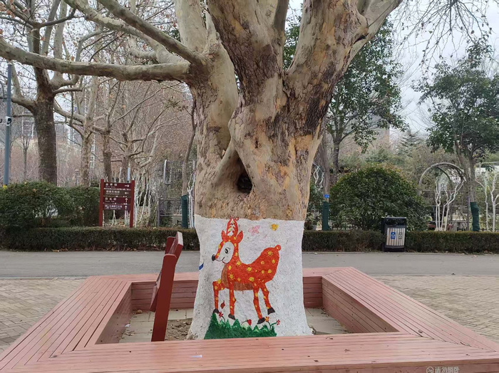 在花圃公园,十二生肖的灵动身影跃然于主干道的树干之上,一笔一画间,将千年传统文化与盎然园林绿意巧妙相融。彩绘如诗,树影婆娑,勾勒出一条生机盎然的“生肖绿廊”,适合热爱拍照的市民在此打卡。