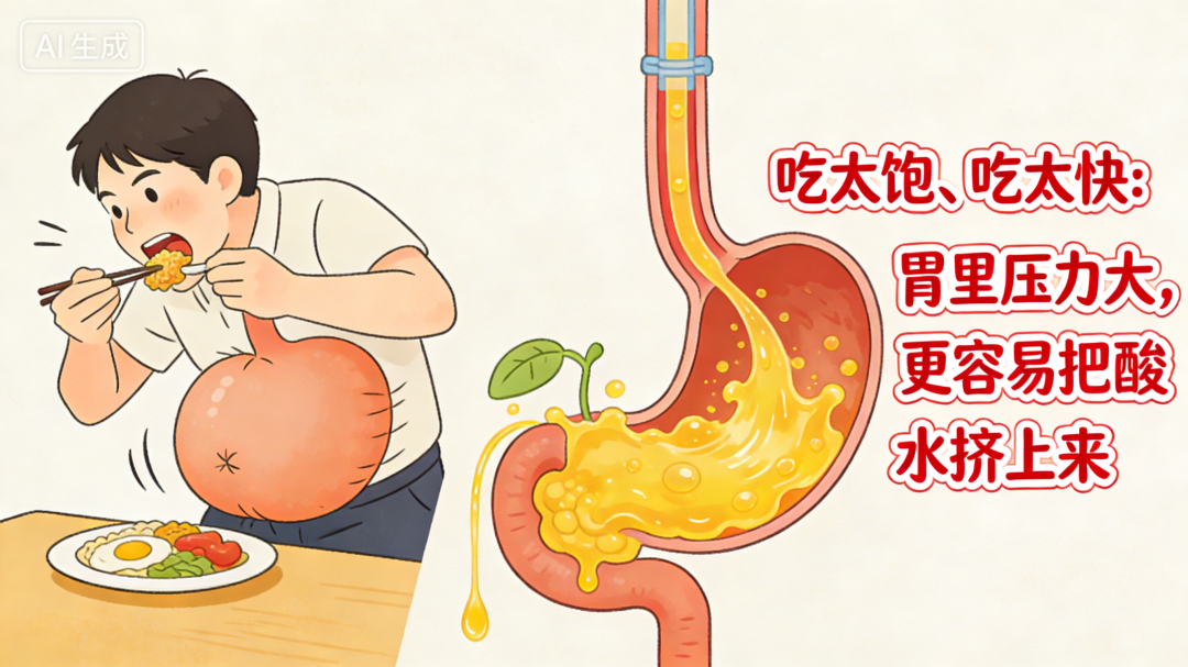吃太饱、吃太快:胃里压力大,更容易把酸水挤上来;