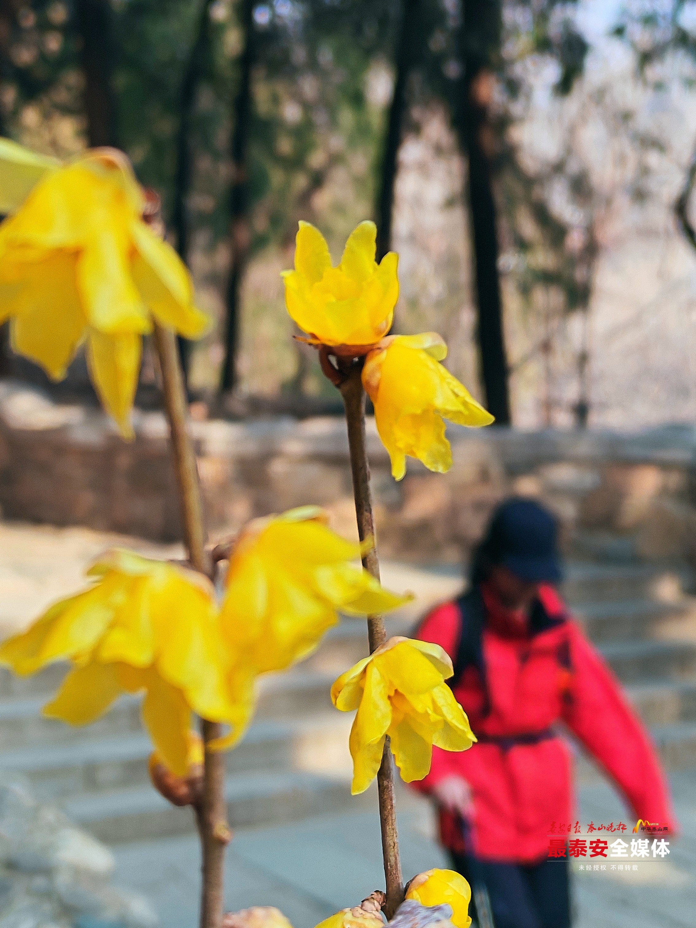 鹅黄色的“虎蹄”蜡梅,与石刻上的“虎”字,不期而遇,成为登山途中一份意外的诗意。