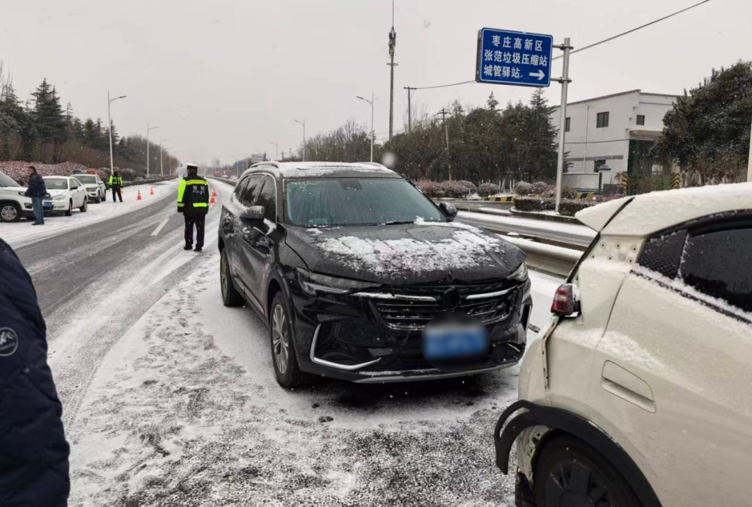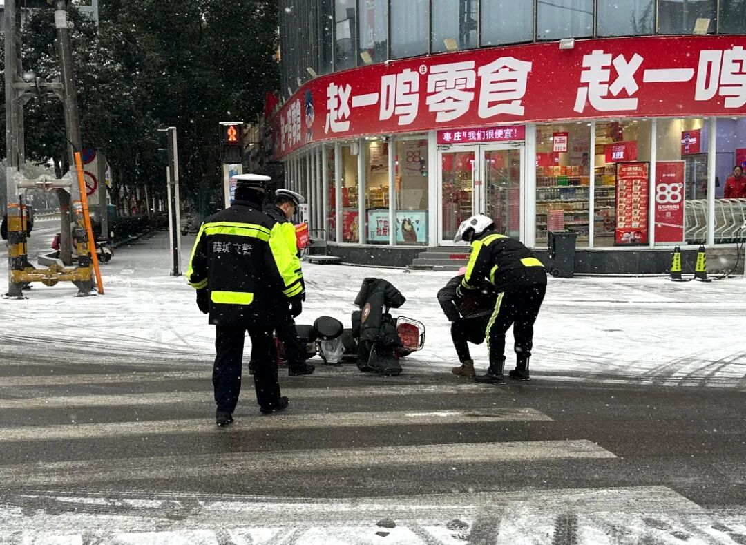 高新区交管大队民警及时处理因路滑产生的交通事故,同时引导过往车辆减速避让,防止二次事故发生。
