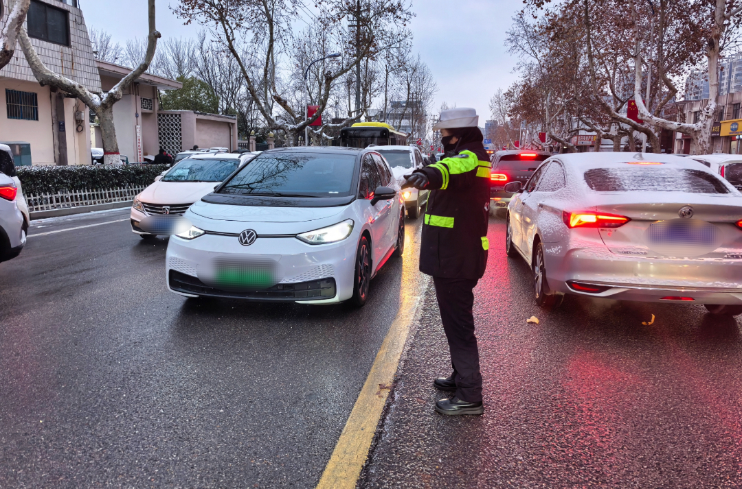 降雪导致路面湿滑、能见度下降,交通通行压力陡增。全市公安机关最大限度将警力、装备投向路面,科学采取限速、控距、控流及临时管制等措施,全力保障群众出行安全。