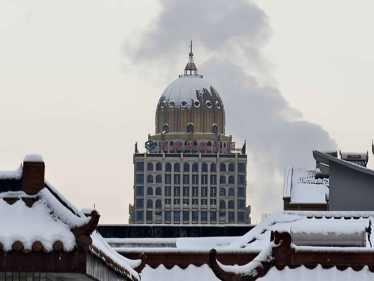 1月20日大寒时节,山东枣庄薛城区小沙河公园银装素裹。皑皑白雪覆于黛瓦、石桥与河畔草木之上,湖面如镜,倒映着琼枝玉树与现代楼宇。冰棱垂挂,雾霭轻笼,远处大厦的穹顶在雪色中更显雅致。市民漫步赏景,冬雪为这座城晕染出一幅诗意融融的冬日画卷。
