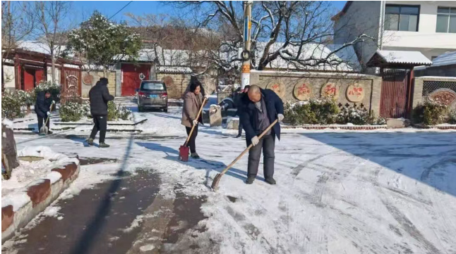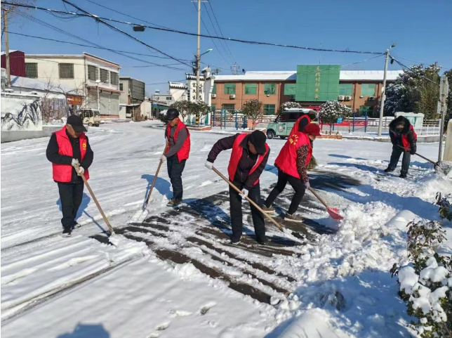 齐村镇坚持以雪为令、闻雪而动,镇机关及各村(社区)党员干部在主次干道、人行道、公交站点等人员密集区域,高效开展铲雪、破冰、撒盐作业,切实保障群众出行安全畅通。同时,全镇广泛发动志愿服务组织、社会团体及热心群众组建清雪队伍,深入背街小巷、居民院落开展清雪除冰工作。志愿者重点关注孤寡老人、困难家庭、残疾人等特殊群体,提供积雪清扫、生活帮扶等暖心服务。