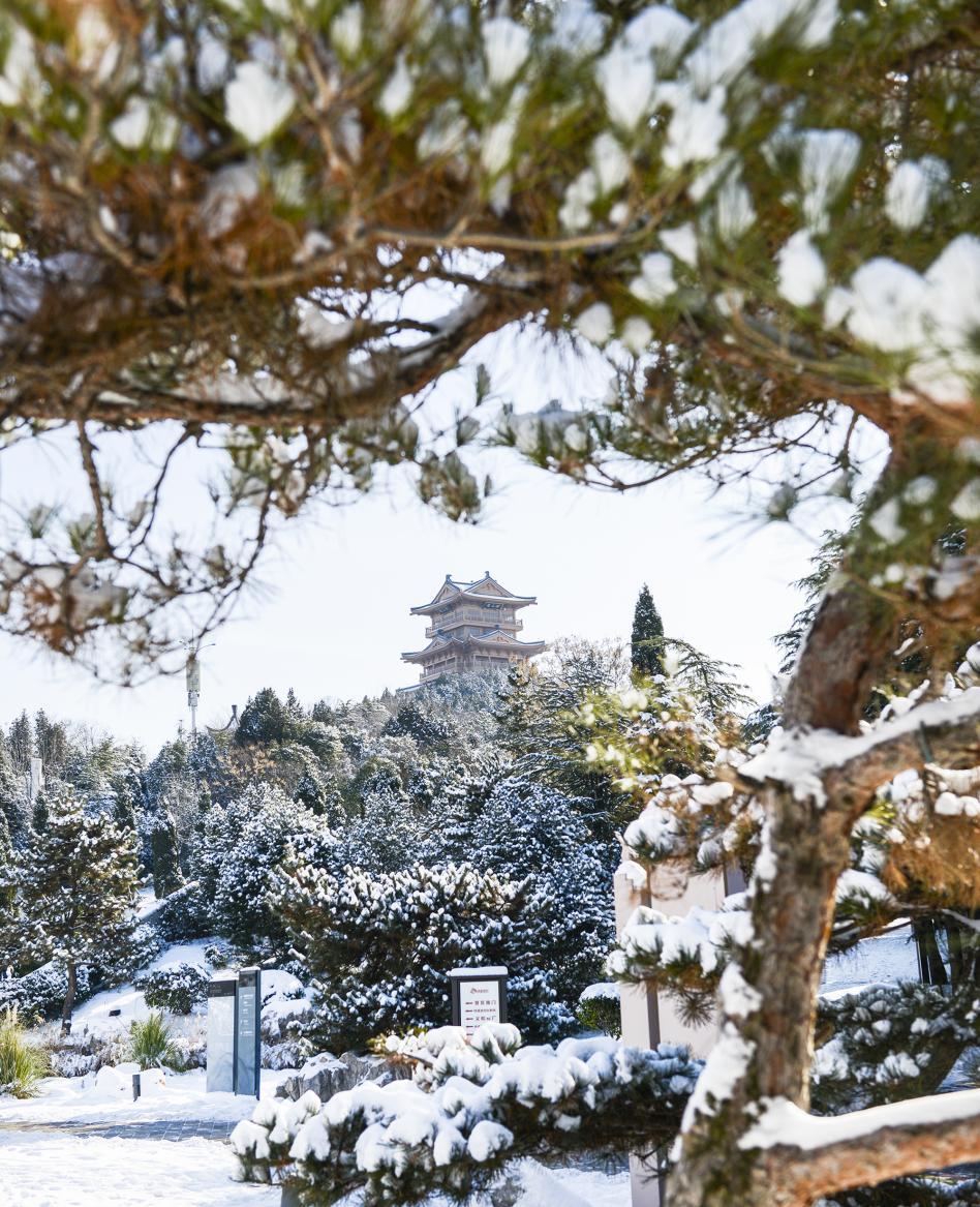 1月20日,大寒节气,一场降雪过后,山东省枣庄市公园里银装素裹,景美如画。
