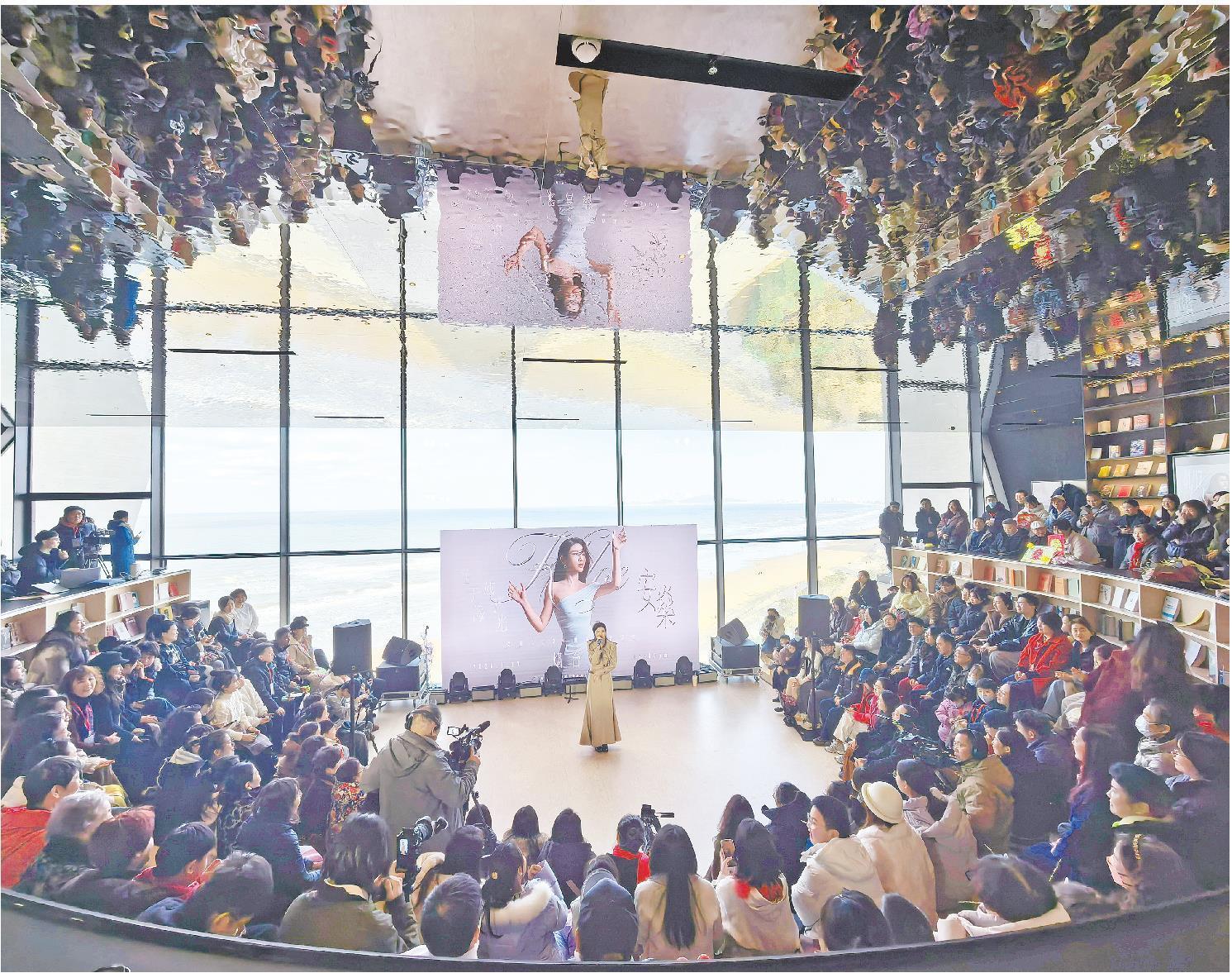 2026年,烟台将扎实开展国家消费“三新”试点,扩大首发经济、悦己经济、新零售经济等新型消费,举办首发首秀首展活动25场以上,培育服务消费集聚区15个以上,开展百场促消费活动、百场高质量展会,举办音乐节、演唱会、国际海岸生活季等丰富多彩的活动。图为1月17日安燊2026时光塔音乐会,在黄渤海新区时光塔空中图书馆举办。