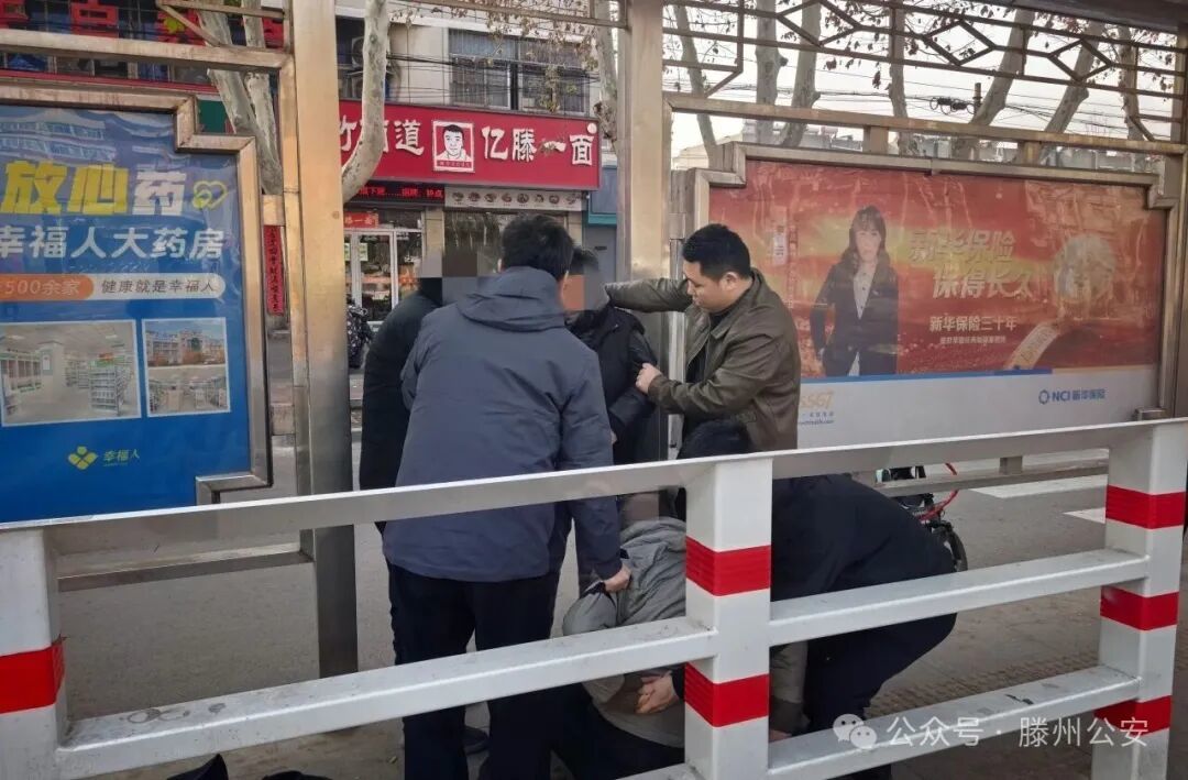 在滕州市区某公交站台处,将正在物色被骗目标的5人抓获。