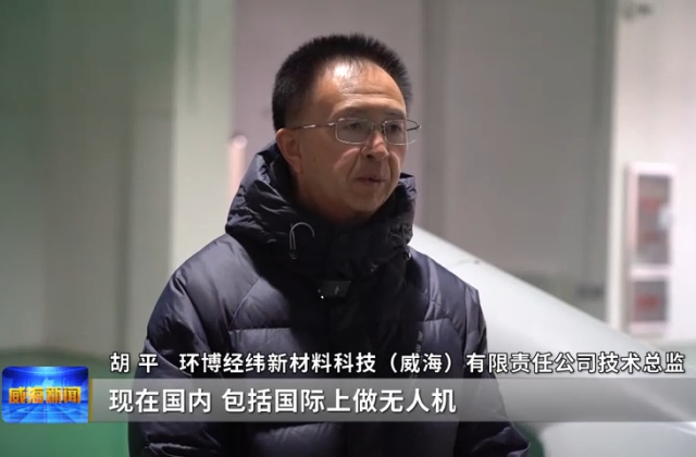 环博经纬新材料科技(威海)有限责任公司技术总监胡平说,现在国内、包括国际上做无人机都是通过传统热固性成型工艺,它是靠手糊的工艺来做的,大概4个人要弄1天才能出一架,他们是10分钟就出一架。韧性要比热固性的成型技术高10倍以上。成本要低三分之一。