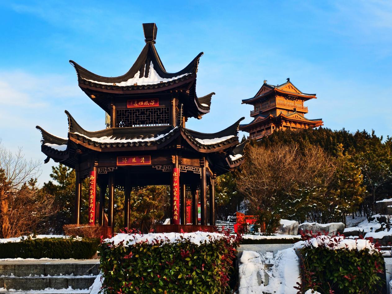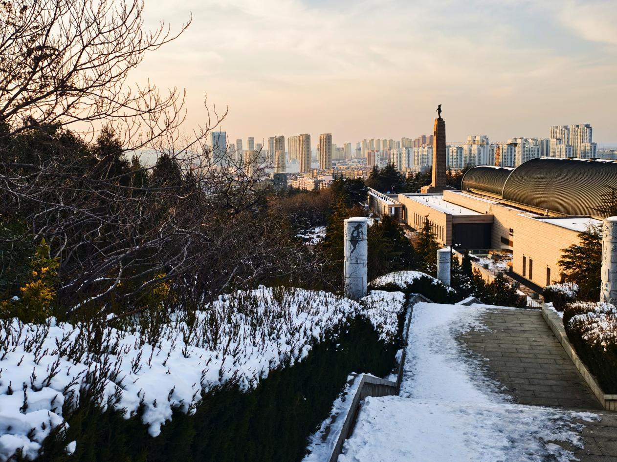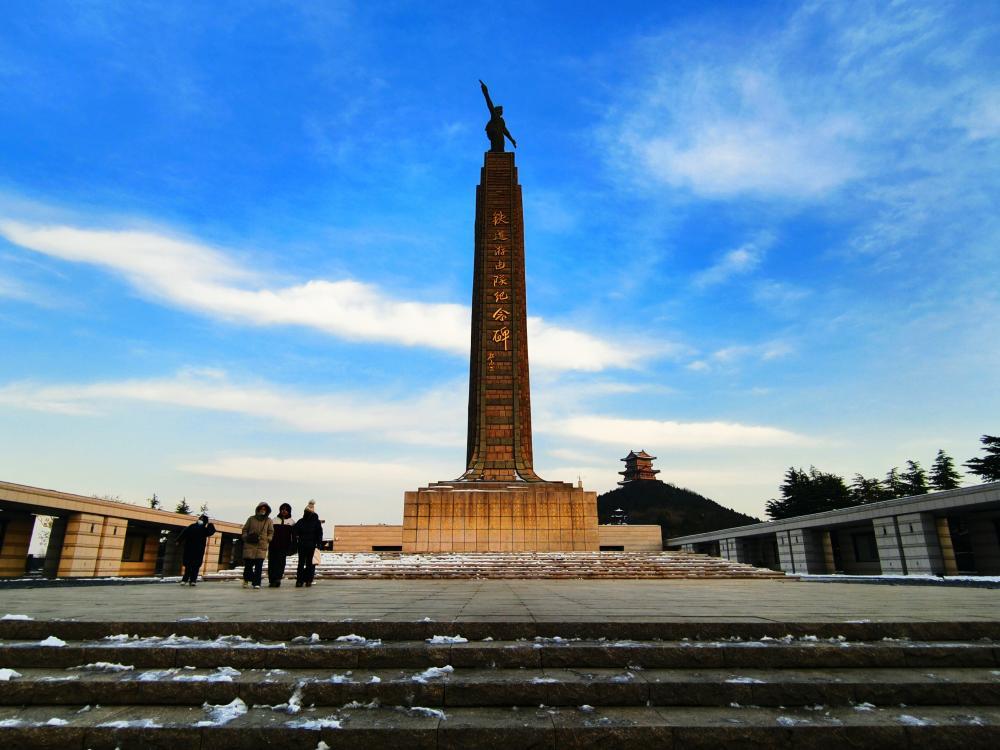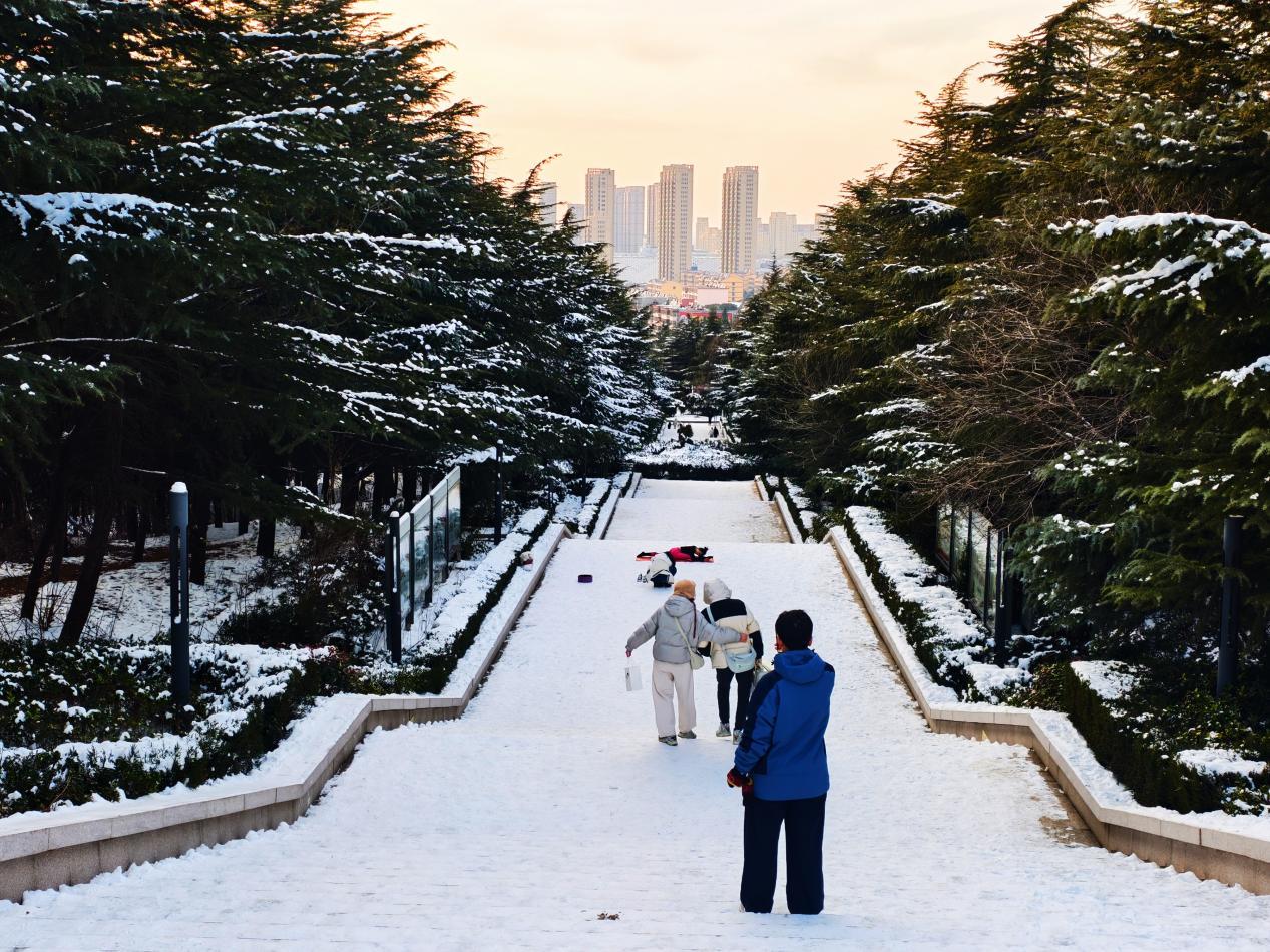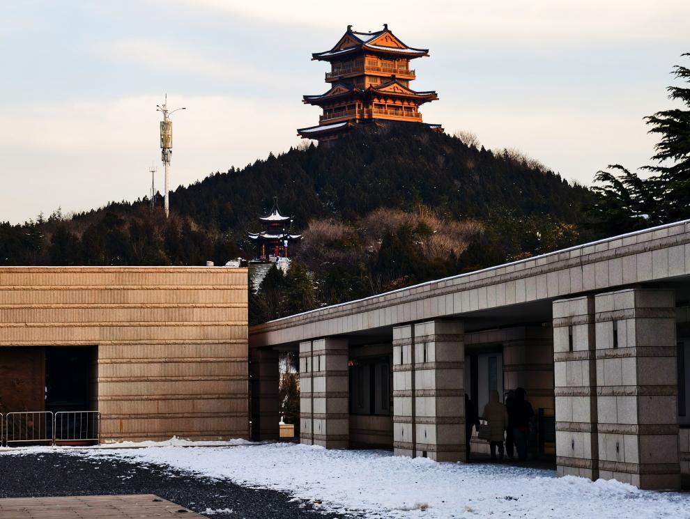 1月21日,山东枣庄铁道游击队纪念园雪后初霁。暖阳为临山阁、纪念碑镀上暖金,步道积雪未融,松柏覆雪挺立。市民漫步林间,在冬日暖阳中重温红色记忆,感受历史与自然交融的独特韵味。(凤观枣庄 姚三石 摄影)