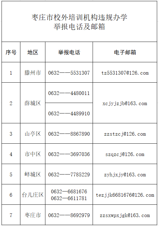 附件:1.枣庄市校外培训机构违规办学举报电话及邮箱
