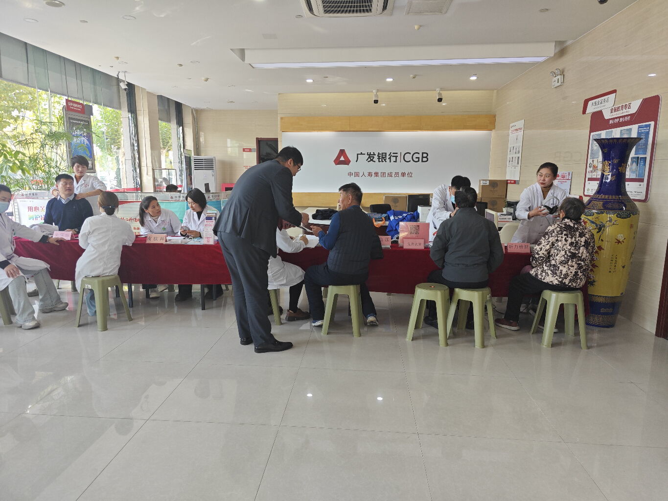 活动现场,来自医院的专家团队为前来办理业务的客户及周边居民提供了免费的健康咨询、血压血糖检测及冬季养生指导。广发银行济宁邹城支行员工则借此机会,积极普及金融知识,解答市民关心的存款、理财等问题。