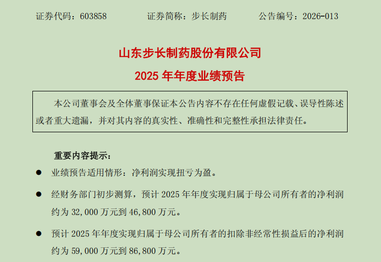 1月27日,山东步长制药股份有限公司(证券代码:603858 证券简称:步长制药)发布2025年年度业绩预告。