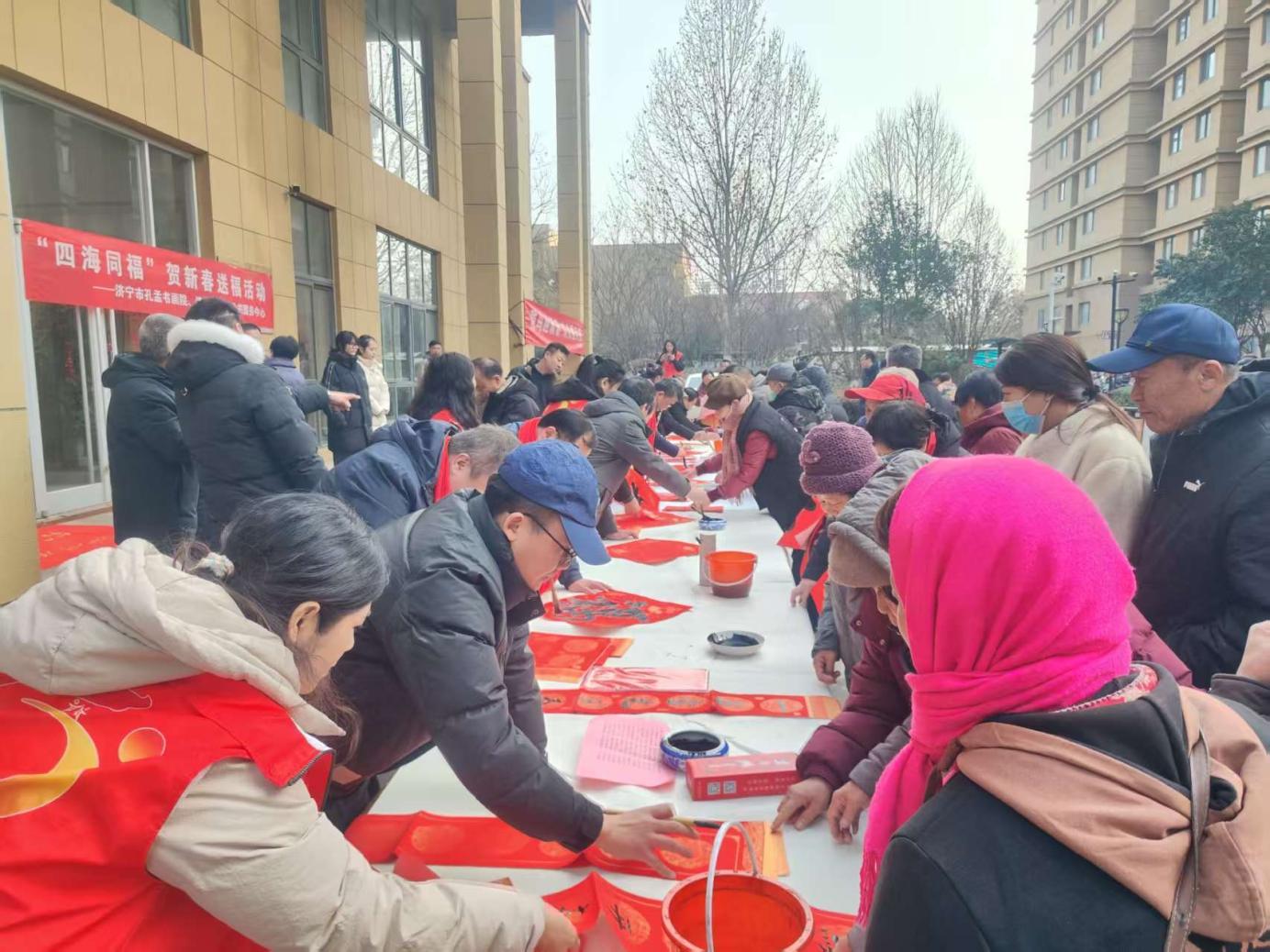 过了腊八就是年,为让新春年味更浓、文化春风更暖,1月28日,济宁市孔孟书画院、济宁市旅游公共服务中心携手泗水县公共文化服务中心,在泗河街道东盛社区联合举办“万福送万家”文化惠民活动,把接地气、有温度的文化服务送到群众家门口。济宁市孔孟书画院副院长刘培露等一行10余人,与泗水书画家同台挥毫、齐送祝福。泗水县文化和旅游局、泗河街道党工委负责同志等出席活动。