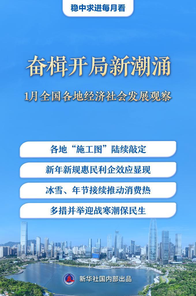 地方两会陆续召开,布局全年发展重点;惠民利企新规相继落地,政策效应不断显现;冰雪经济、年节经济冬日接力,为消费增添新动能;新技术、新方法筑牢温暖防线,迎战寒潮……1月以来,我国经济社会发展亮点多、新意足,在保持稳中有进态势下,全国各地奋楫开局,经济社会发展信心和动力不断增强。