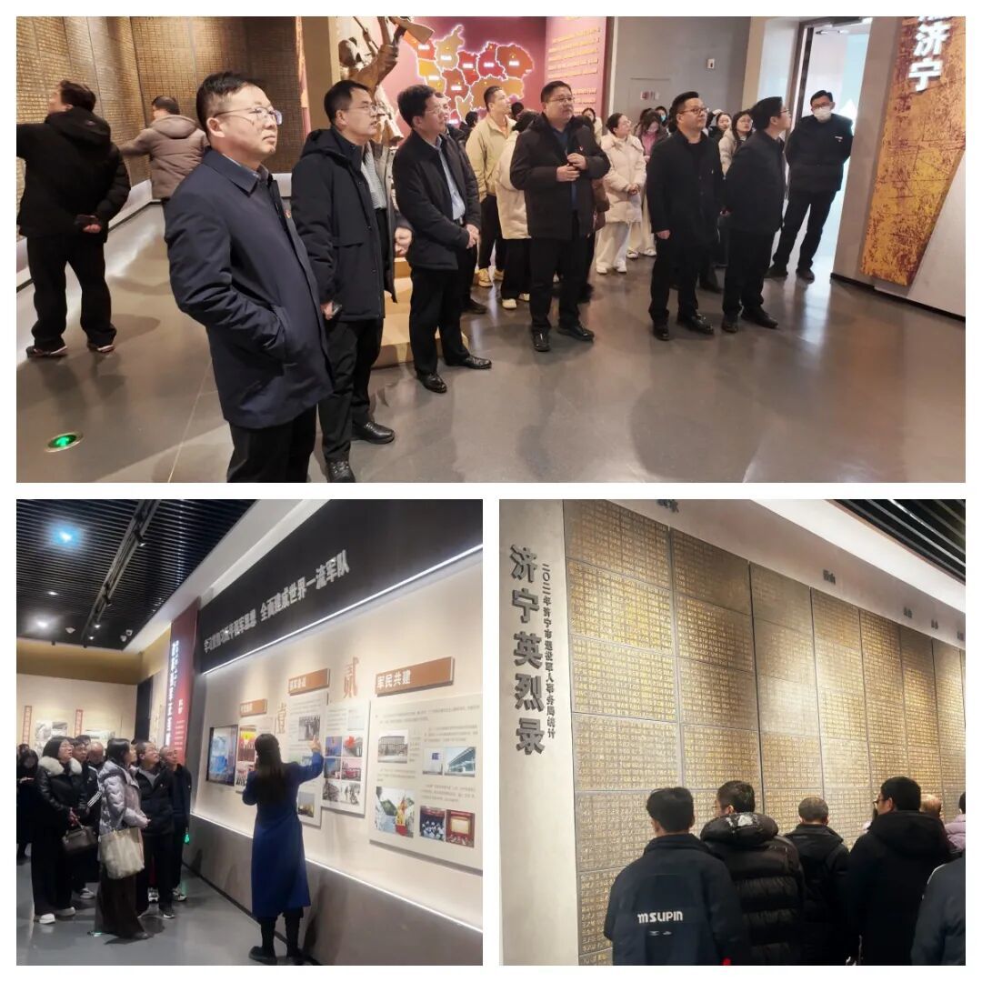 揭牌仪式后,全体人员共同欣赏了红色革命情景短剧《我找了你一辈子》,沉浸式的演绎让大家深切感受革命先辈的家国情怀与使命担当。在博物馆专业讲解员的引导下,党员教师们先后参观了《礼运和合文物华光——济宁地区珍宝特展》与《济宁革命军事馆》,从承载历史记忆的文物珍宝到记录革命历程的珍贵史料,大家深刻感悟济宁文化的精神内核,进一步坚定了文化自信与育人初心。参观过程中,双方围绕课程共建、师资互聘等重点展开现场研讨,明确将联合策划编撰文物历史科普读物,打造品牌思政课程。