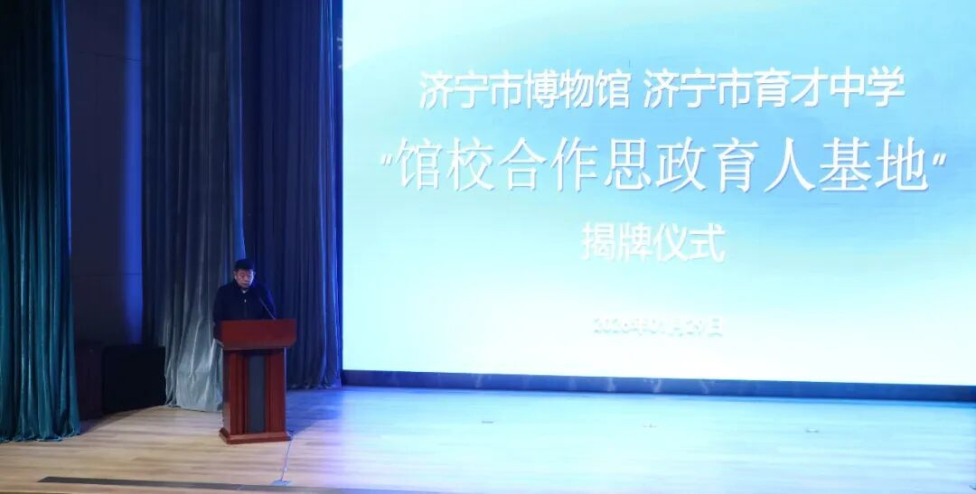 济宁市文保中心主任,市博物馆党委书记、馆长张超致欢迎辞。他表示,作为国家一级博物馆和爱国主义教育基地,济宁市博物馆馆藏文物是承载文明的“活教材”,此次合作将为博物馆优质资源赋能思政教育搭建重要平台,未来将通过定制化研学课程、沉浸式体验活动,让红色基因与文化血脉在思政教育中焕发新生,助力学校思政教育提质增效。