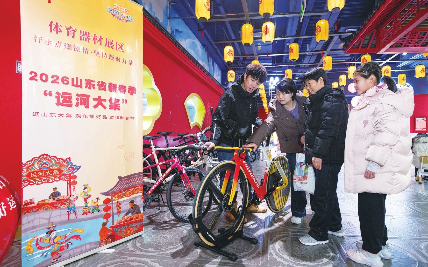 家电体育器材乐购展区内,山东凯力特复合材料有限公司带来了研发生产的山地车、公路车、城市休闲车等多个系列的自行车,并推出打折让利、惠民团购等福利。“‘运河大集’是一个接地气的展示平台,让我们直接对话消费者,有效提升品牌知名度。”公司品牌运营人员刘鑫宁感慨道。