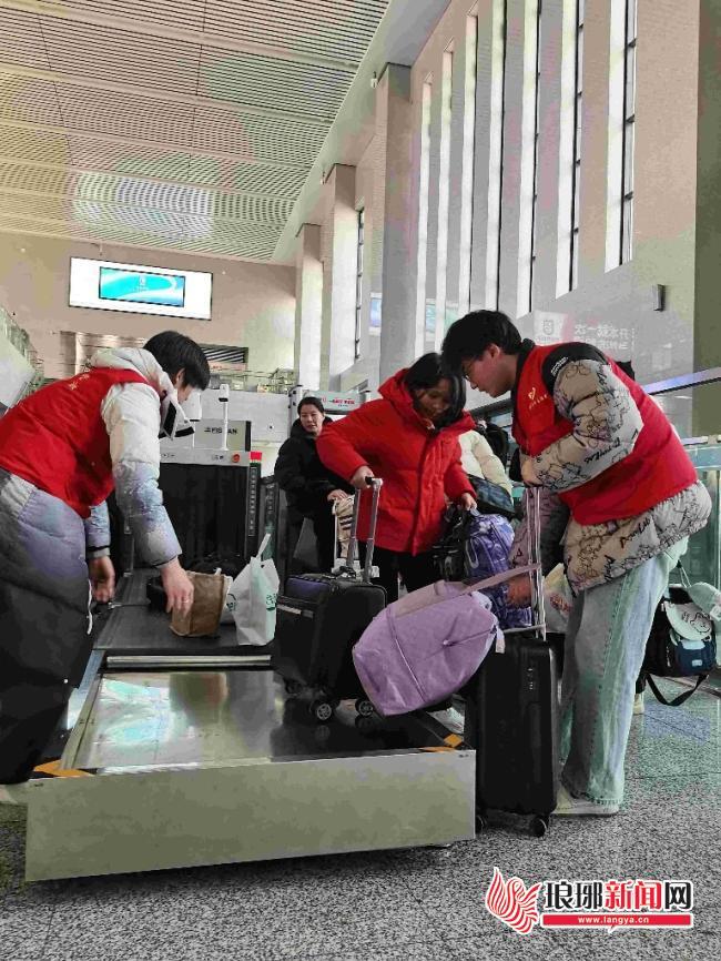 下午1时许,临沂火车站广场上已是人头攒动,拖着行李箱、拎着鼓鼓囊囊年货袋的旅客们有序走向进站口,脸上难掩对家的期盼。安检区域内,旅客们自觉排队,将随身行李依次放入安检仪,工作人员手持检测仪仔细查验,动作麻利而细致。