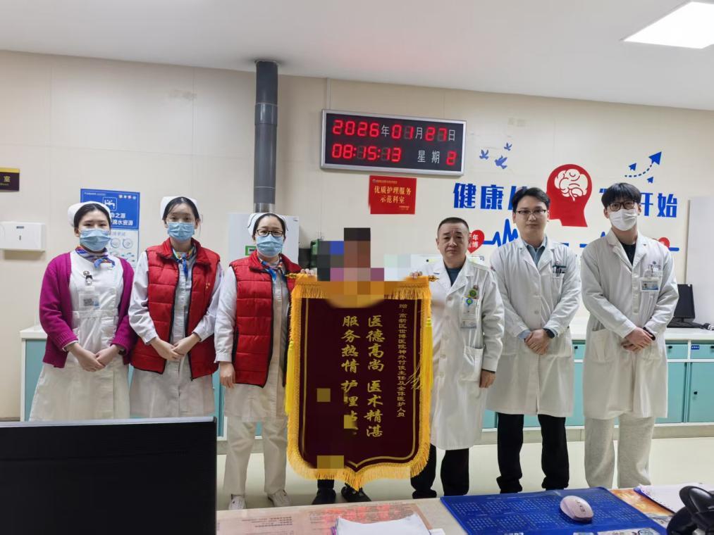 出院时,患者及家属对世博高新医院医护团队和宋立国主任的精湛医术表达了深深的感激,并为医护人员送来感谢锦旗。