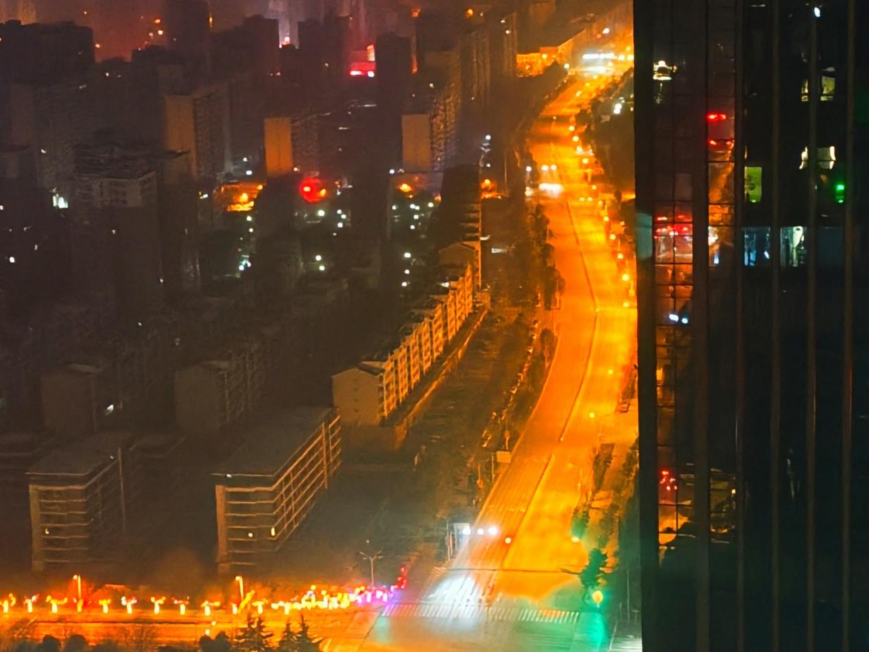 2月5日夜,山东枣庄新城华灯璀璨。高楼玻璃幕墙映着璀璨灯火,车流如光带蜿蜒,夜色与光影交织,勾勒出新城璀璨夜景,尽显城市活力与浪漫。