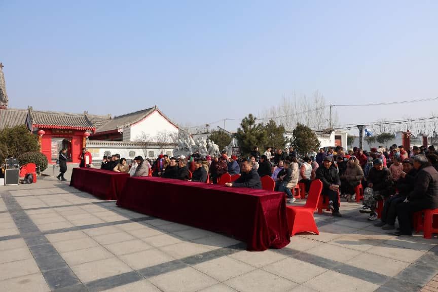 清晨的阳光洒满广场,火红的活动主题背景板在阳光照耀下散发出道道金光,一派喜庆祥和的节日景象。广场上人头攒动,热情洋溢的乡村居民、忙碌准备的文艺工作者、穿梭采访的新闻媒体,汇聚成约1000余人的热闹场面。孩子们追逐嬉笑,老人们含笑驻足,空气中弥漫着墨香与期待,仿佛一幅生动的乡村迎春画卷徐徐展开。