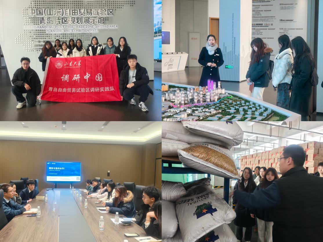 近日,山东大学经济学院“调研中国”师生调研团在中国(山东)自由贸易试验区青岛、济南、烟台三大片区开展实践活动。师生们以实地探访、座谈交流、数据调研、问题研讨等多种形式,深度解码山东自贸区制度创新实践,将课堂理论知识与国际贸易现实场景深度融合,在实践调研中感悟国家对外开放战略的深刻内涵与现实意义,用专业智慧为自贸区建设和高水平对外开放注入青春动能。