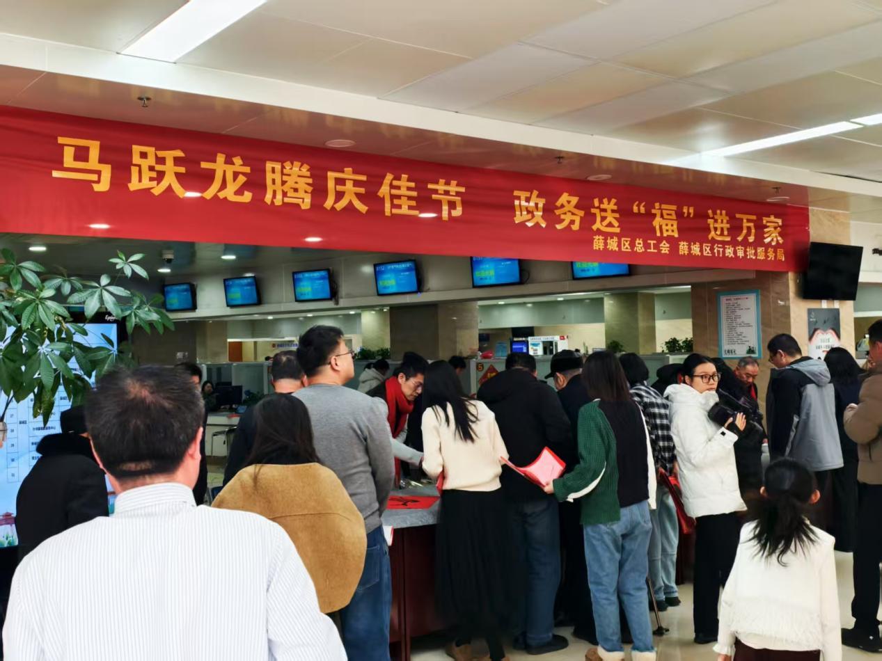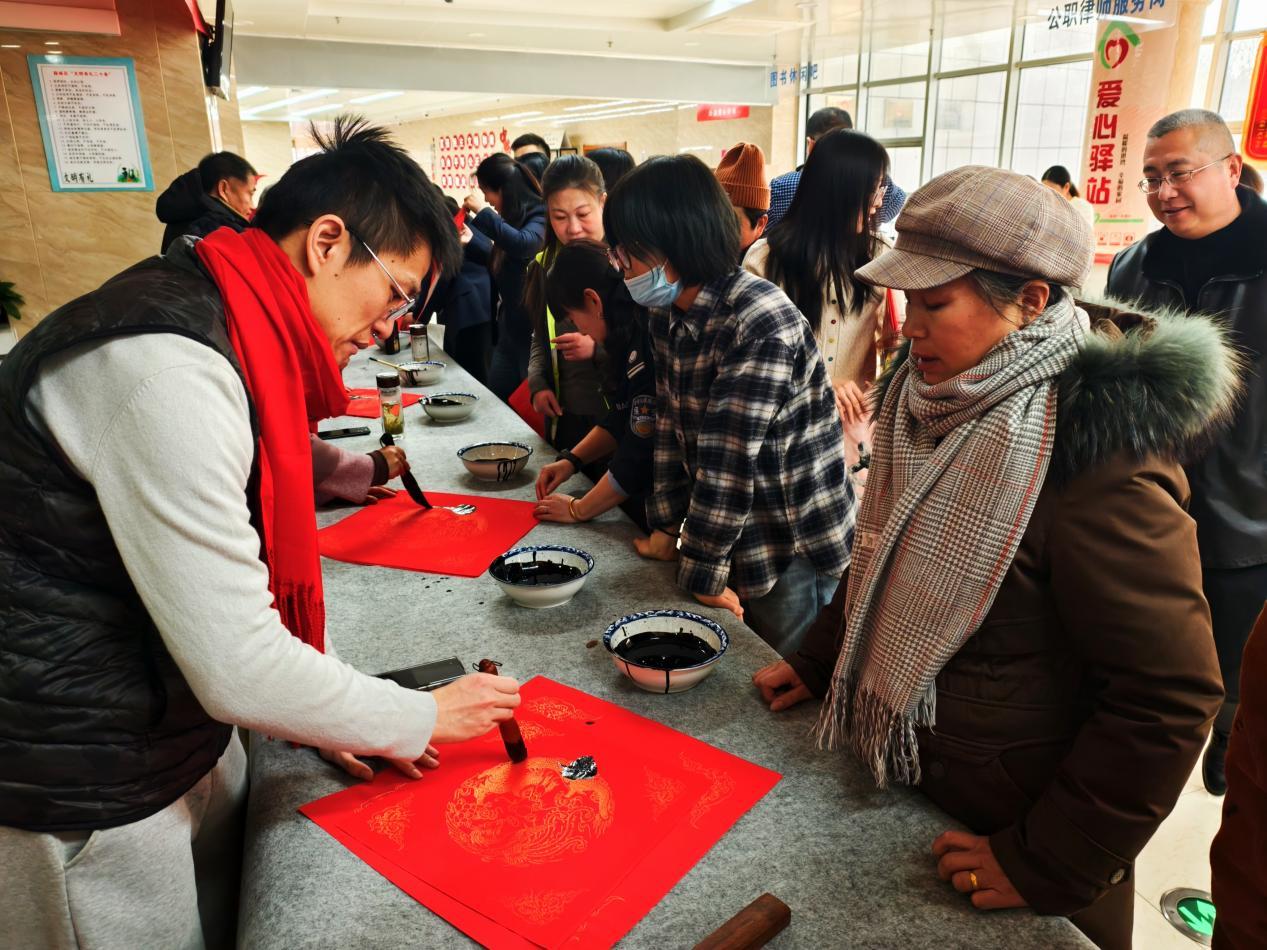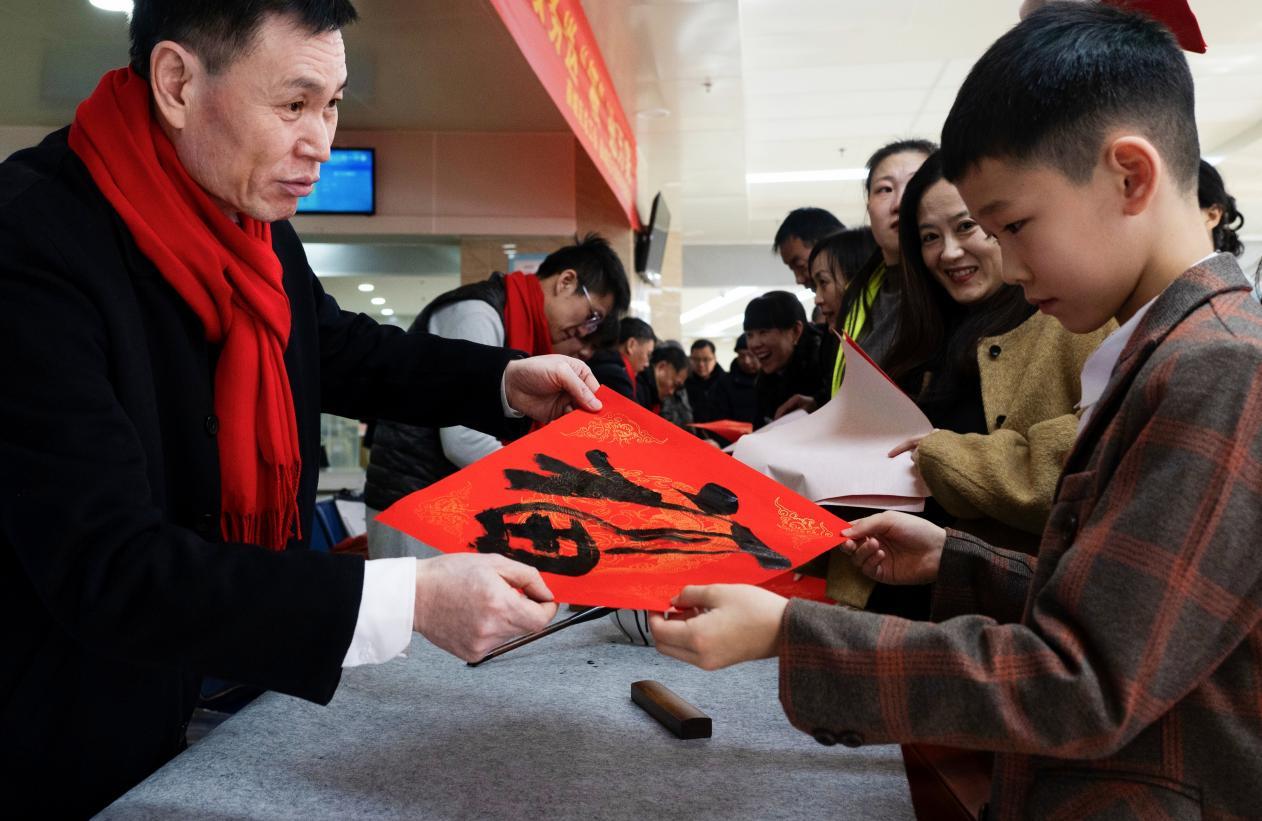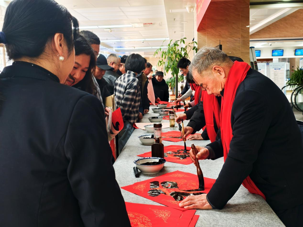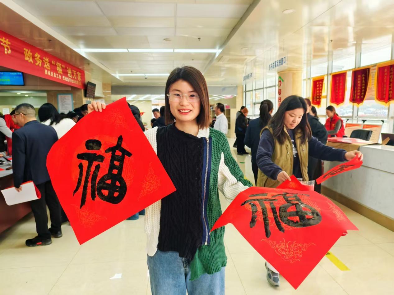 2月9日,枣庄薛城区政务服务大厅内,红纸铺展,墨香纳福。这里正在开展“马跃龙腾庆佳节 政务送福进万家”活动。书法家们挥毫泼墨,将新春祝福凝于笔端,一张张饱含暖意的“福”字送到群众手中,让政务服务更有温度,让年味更浓。