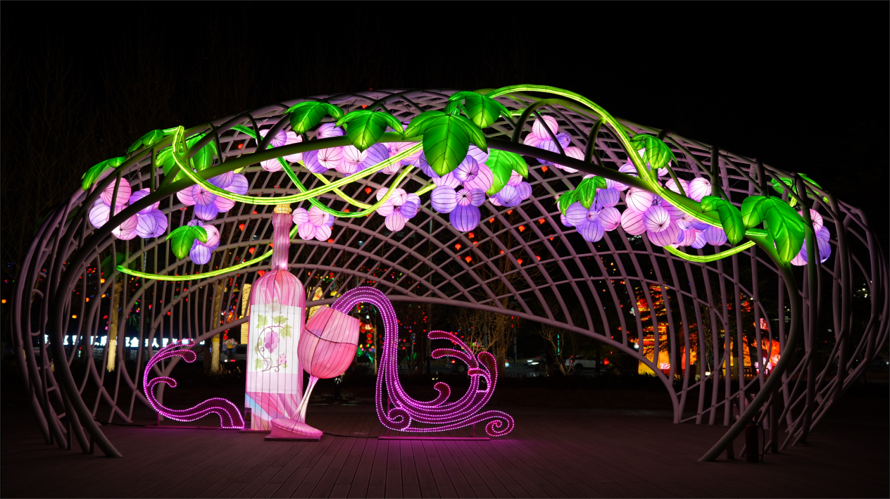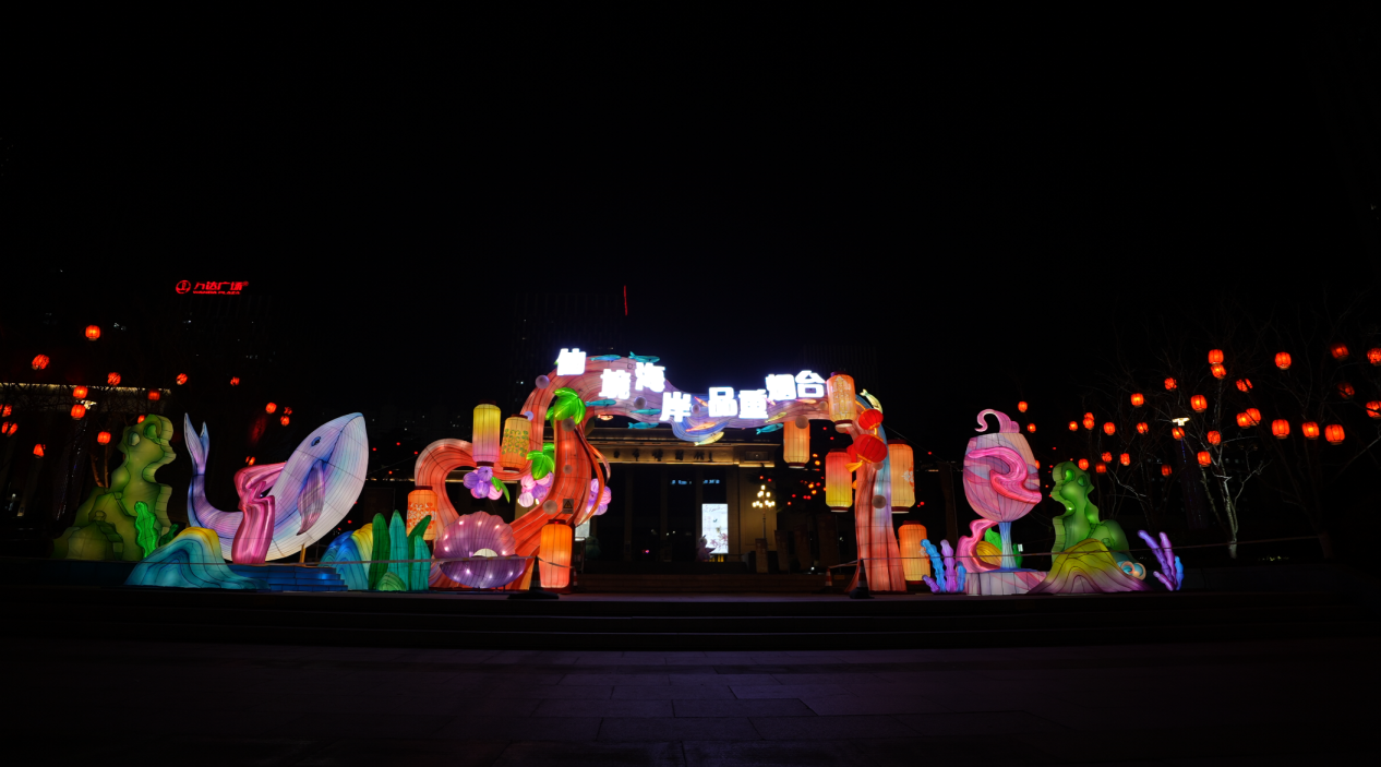 蓬莱区迎春灯饰以“光影焕城”为主题,分区打造不同点位灯光效果。道路方面重点打造北关路、南关东路2条主干道全路段夜间灯光效果,同时在南关路1号岗、邮电大厦口袋公园、蓬栖高速出入口、财政局游园等16处重要道路节点安装特色灯饰,增添色彩。公园方面海市公园、上水门公园、黄海绿洲公园、街心公园4座城市公园各有特色,其中海市公园中由全区不同镇街深度挖掘本地历史文化、特色产业或景观资源打造“一镇一品”特色灯展。
