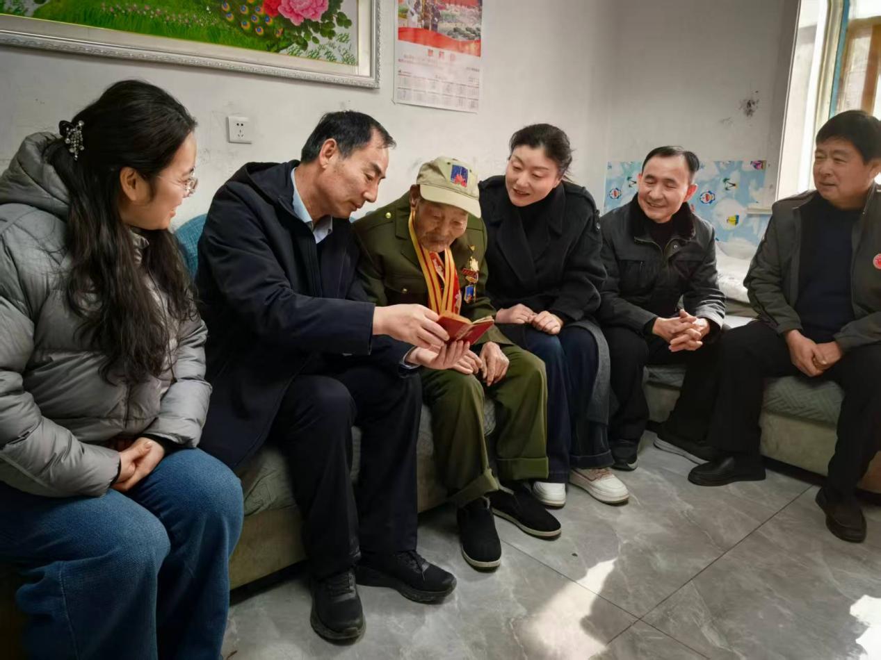 慰问团一行来到吕企荣老人家中,与这位历经战火考验的革命前辈促膝交谈,关切地询问他的身体状况、生活情况和日常需求。吕老虽年事已高,但精神矍铄,回忆起当年的抗战岁月,思绪清晰,情感真挚。他向大家讲述了在艰苦卓绝的战争年代,同战友们一块与日本鬼子战斗、保家卫国的亲身经历和感人故事,言语中饱含着对党、对国家、对人民的深厚感情,以及不畏强敌、英勇奋斗的坚定信念。这些生动的讲述,仿佛将大家带回了那段烽火连天的峥嵘岁月,让在场的每一位人员都深受教育和触动。