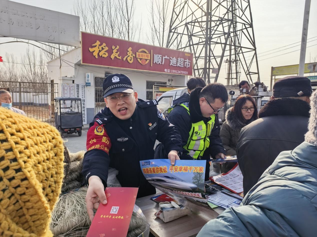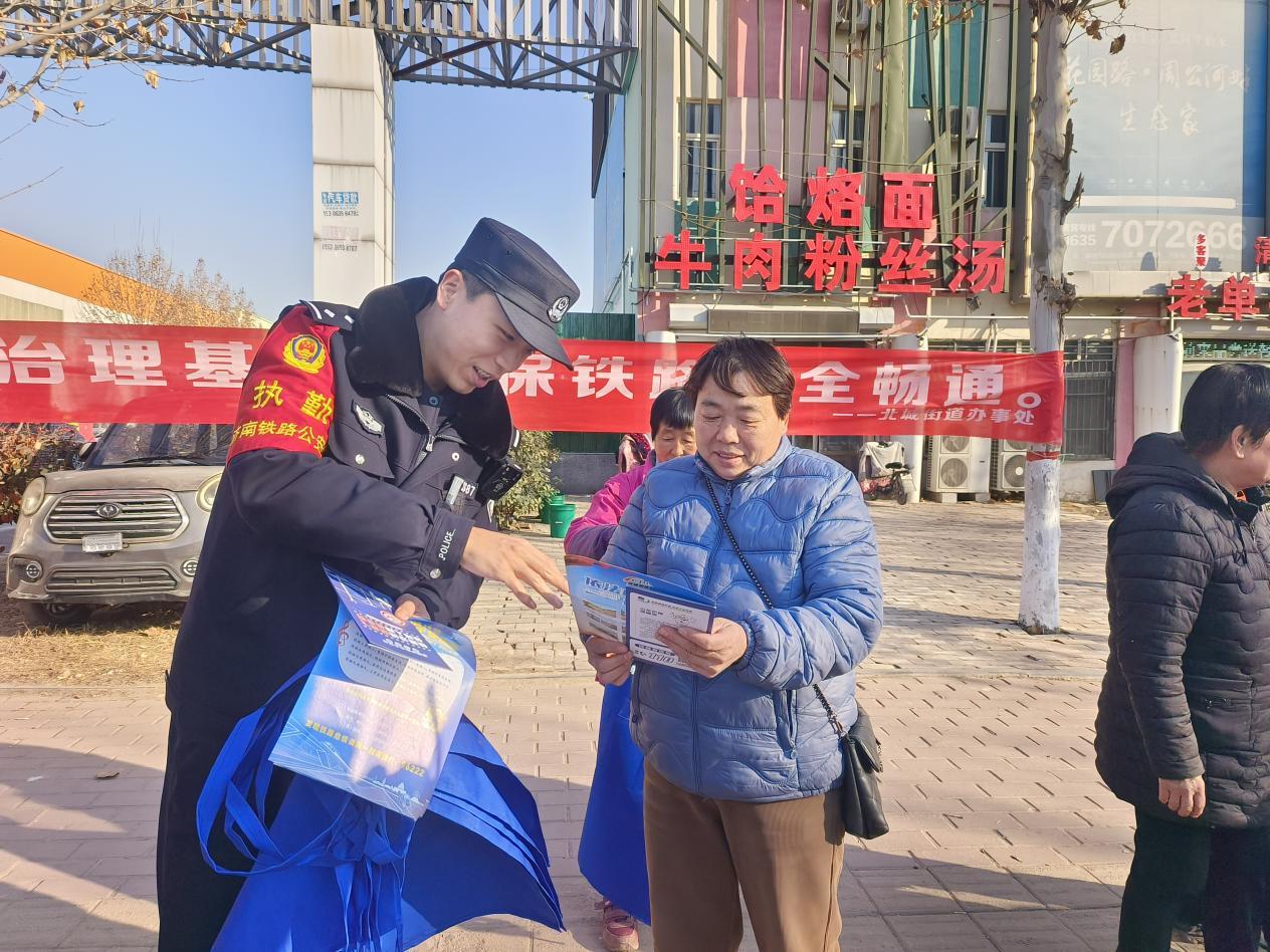 铁路安全进万家,平安护航春运路。随着春运大幕开启,沿线群众出行增多,铁路安全尤为重要。近日,济南铁路公安处聊城东站派出所组织民警深入辖区沿线村庄、集市,开展了一系列形式多样、内容丰富的铁路安全知识宣传活动,将安全理念送到百姓身边,全力确保春运期间铁路运输安全畅通和沿线治安稳定。