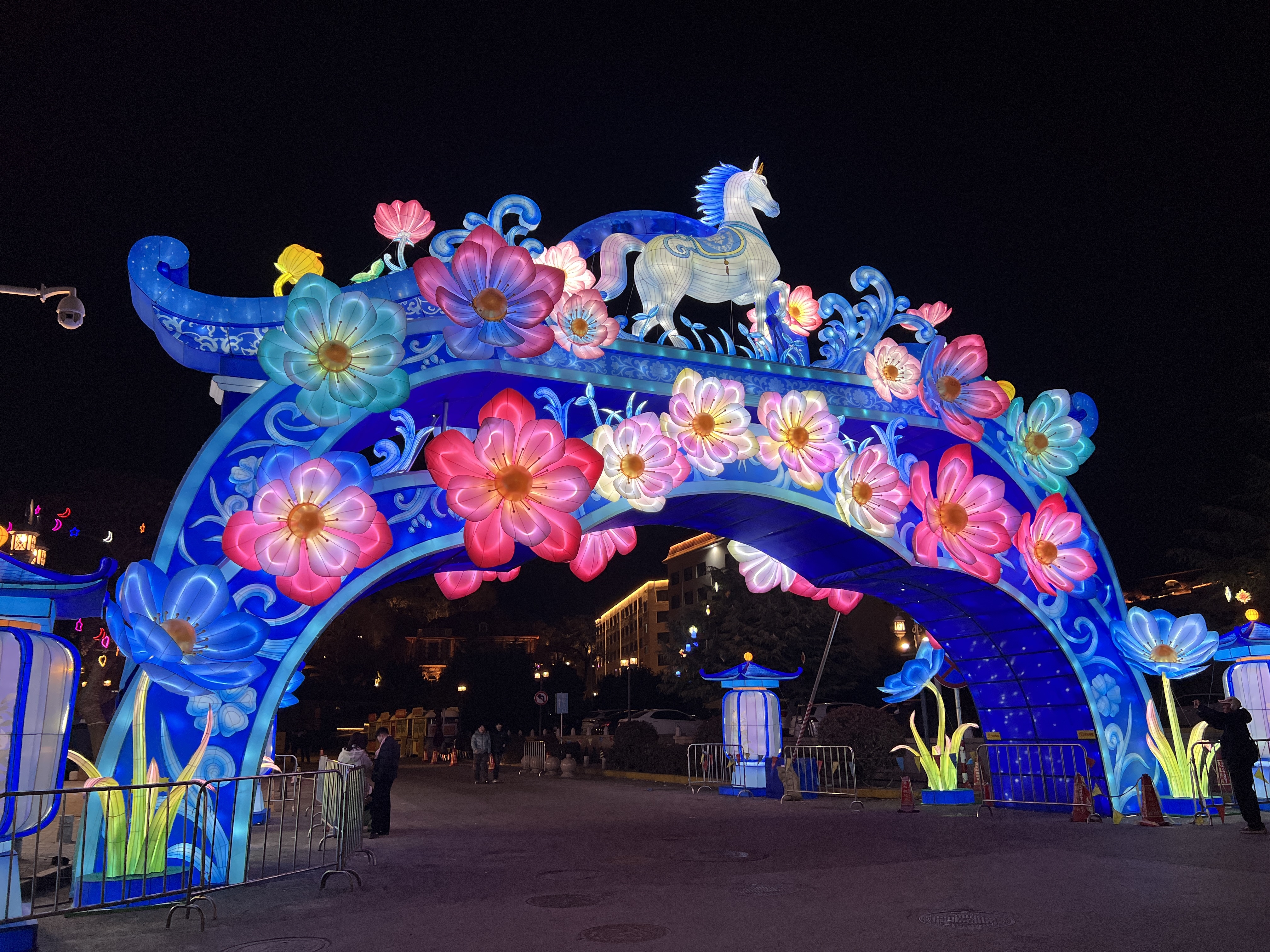 烟台山以"马上生花·新春嘉年华"为主题,铺展18个特色灯组点位,打造"烟海花境""云星漫径""花瀑漫墙"等诗意场景,呈现"现代诗意国潮"风格。初一至初六举办跳跳糖嘉年华,初七至初八进行wif5ve男团演出,初九至十三上演《梦奇》剧目,十四至十五推出Robin女团演出,初一至十五更有《这有龙凤》剧目演出及巡游表演。