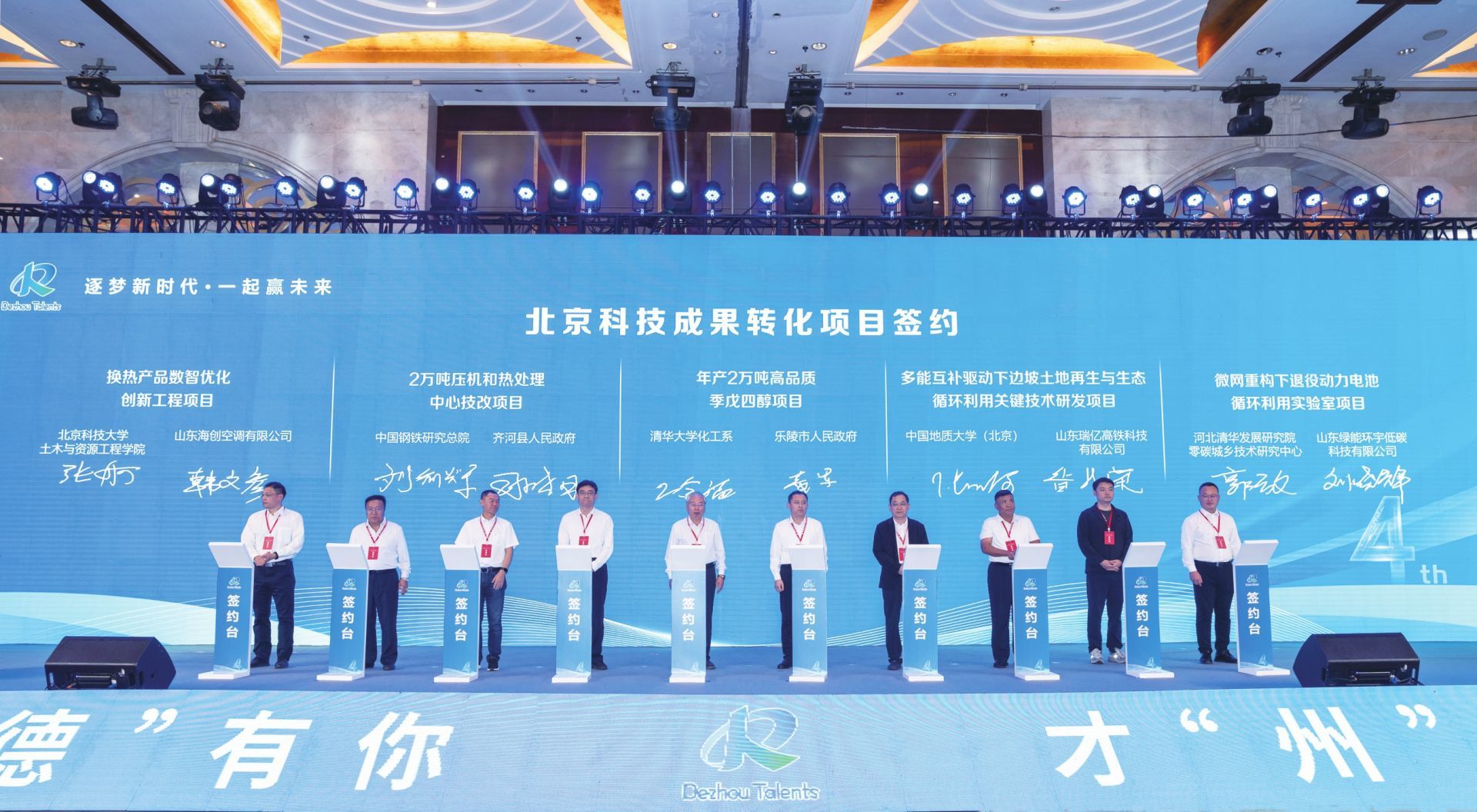 我市积极搭建平台,吸引高科技人才和优质产业项目。2025年,举办中国·德州高层次人才创新创业大赛北京分赛、京德科技人才对接恳谈会,征集“清华大学超低能耗光储建筑技术”等25个人才项目;机制化举办“央企德州行”“京德直通车”等系列活动。在2025年9月27日举行的京德科技人才合作交流大会上,市政府与北京大学创新创业学院、省科创集团签署协议,揭牌成立“中关村e谷(德州)科技成果转化基地”,300余名北京高层次人才与会对接合作,10个项目现场签约。