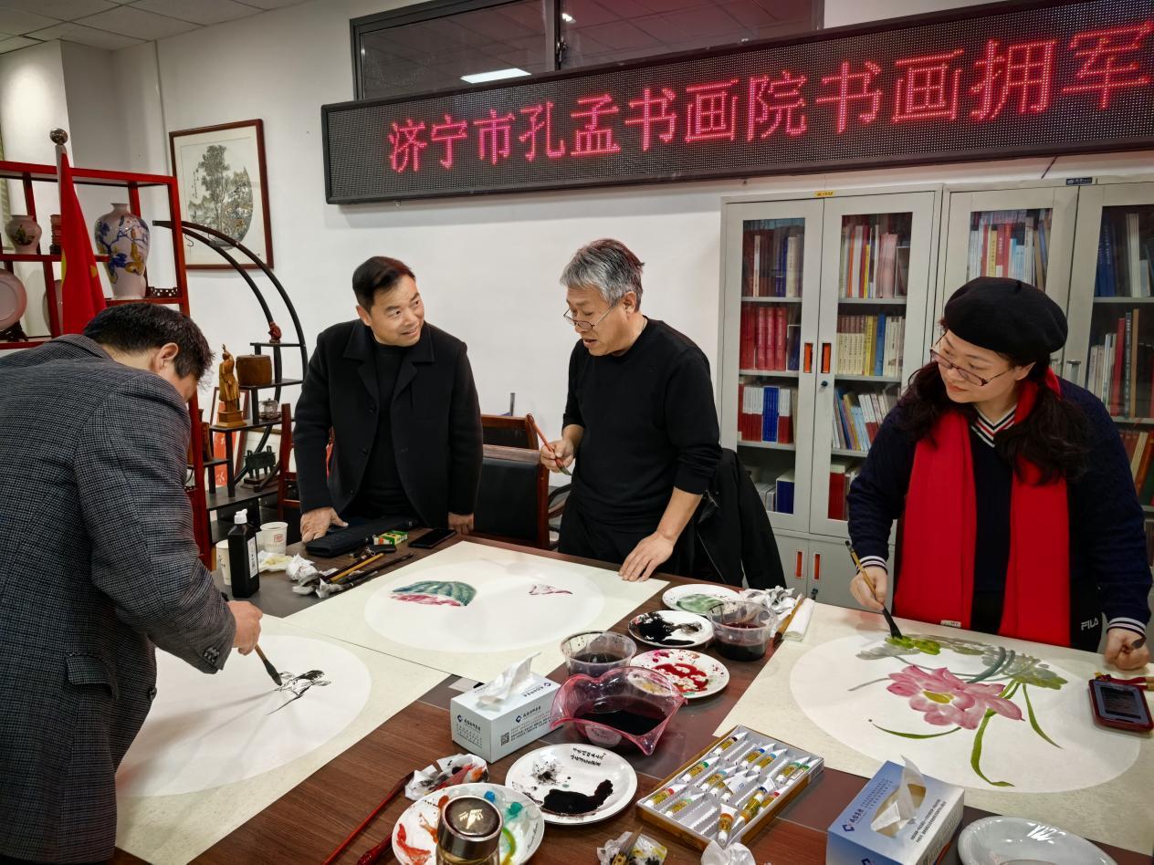 济宁市退役军人事务局原副局长、一级调研员、济宁市拥军优属协会会长于彦柱;济宁市退役军人事务局双拥科干部谢军;济宁市拥军优属协会书记、秘书长徐宜东;济宁市孔孟书画院副院长、济宁市书画创作学会会长刘培露;济宁市孔孟书画院副院长、济宁市美术家协会主席王德亮;济宁市孔孟书画院金石研究与典藏部主任丰伟;济宁市青年美术家协会主席靳贵芳及济宁知名画家韩国玉、王立东、唐爱国等参加创作活动。
