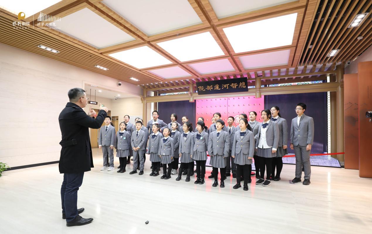 本次活动突破传统舞台边界,创造性打造“合唱+文旅”研学环节,让艺术走进历史现场,让歌声激活文化记忆。在承办方共青团济宁市任城区委与保利剧院的共同组织下,泰山大剧院保利童声合唱团的孩子们走进全国重点文物保护单位——济宁河道总督署遗址公园。在承载着运河漕运辉煌历史的古建遗址前,孩子们以一场突如其来的“快闪”合唱,让《世界赠予我的》、《新年好》等作品的清澈音符在古老砖石间跳跃回荡,实现了现代艺术与厚重历史的时空对话,生动演绎了“让文物活起来”的文旅融合新场景。