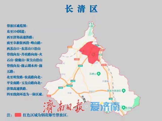 一、主城区(历下区、市中区、槐荫区、天桥区、历城区、高新区、南部山区)济南绕城高速公路环线以内为禁放区;天桥区绕城高速公路环线以北至黄河以南行政区域为禁放区域。