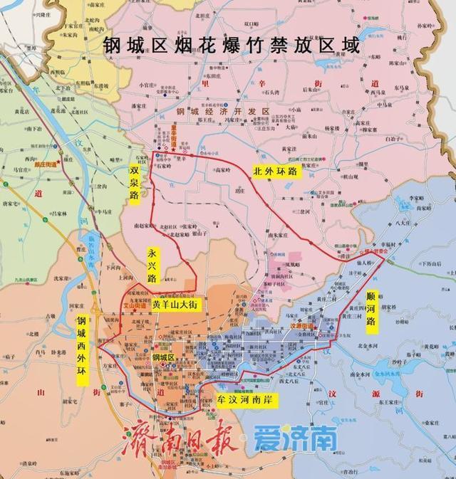 东至顺河路(汶水溪路);西至钢城西外环-永兴路-黄羊山大街-双泉路;南至牟汶河南岸;北至钢城北外环。