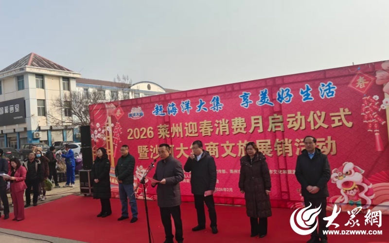 年味正浓,市集鼎沸。近日,承载百年烟火气息的莱州市沙河大集人头攒动、热闹非凡,由烟台市商务局、莱州市委宣传部、莱州市商务局、莱州市文化和旅游局联合主办的2026莱州迎春消费月启动仪式暨莱州沙河大集商文旅展销活动正式拉开帷幕。本次活动以政策惠民、非遗展演、特色美食、电商直播为核心,打造沉浸式新春消费盛宴,吸引周边村镇数千名群众踊跃参与,现场氛围热烈喜庆,正式奏响莱州新春消费季的奋进乐章。