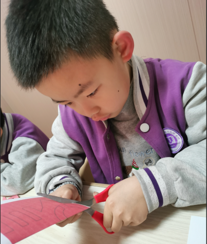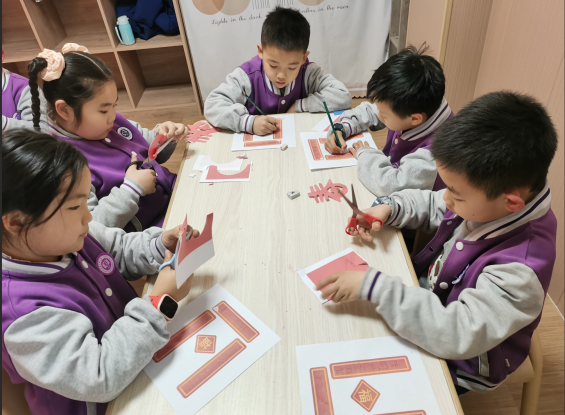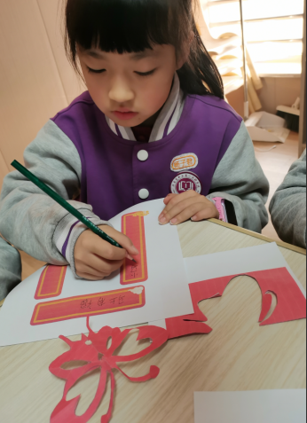 写春联与剪纸活动中,同学们沉浸在传统年俗的趣味里。铺展红纸、饱蘸浓墨,大家一笔一画书写趣味春联,从对仗巧妙的吉祥联句到充满童趣的创意词句,稚嫩笔触间藏着对新年的奇思妙想与美好期许;手持剪刀、指尖翻飞,红纸在巧手下化作灵动的“春”字窗花、翩跹的蝴蝶纹样,既有传统韵味又不失童真创意。笔墨飘香与剪纸镂空相映成趣,同学们在书写与创作中感受汉字之美、非遗之巧,既锤炼了动手能力,又在传统文化浸润中厚植家国情怀。