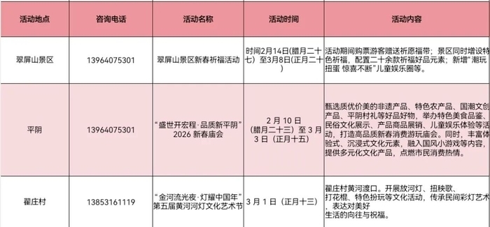 平阴县的乡村旅游活动带来了“祈福+庙会+黄河文化”的多元乡村旅游体验。新春祈福、新春庙会、黄河灯文化艺术节等,通过放河灯、扭秧歌等活动传承民俗,让市民和游客在祈福、逛庙会、赏灯中感受浓浓年味儿。