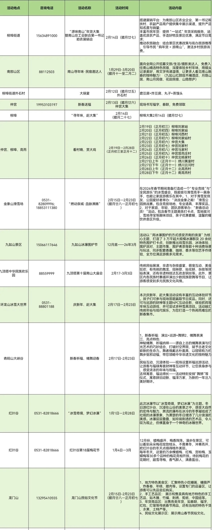 南部山区的乡村旅游活动呈现多元化的特点,柳埠、西营热闹的年货大集,多家滑雪场的冰雪体验,九如山的浪漫冰瀑,以及景区迎春庙会等活动打造丰富的新春乡村游。